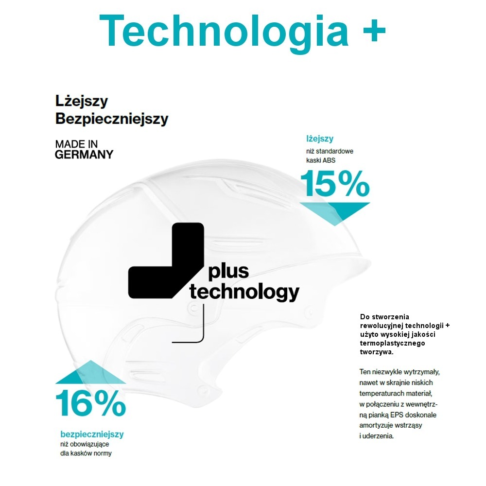 Technologia + - Innowacyjny, niezwykle lekki i bezpieczny polimer w konstrukcji Hardshell.
