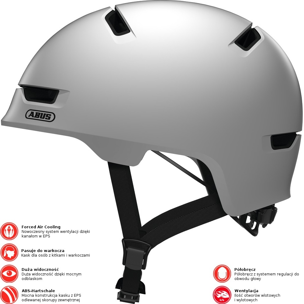 Bezpieczna jazda w miejskiej dżungli. W gąszczu ulic zawsze konieczny jest kask. Kask rowerowy miejski Abus Scraper 3.0 to świetny wybór dla wszystkich rowerzystów miejskich. Wysokiej klasy kask miejski wymaga wysokiej jakości materiałów, musi być widoczny w masie samochodów oraz powinien być wytrzymały podczas codziennego użytkowania, tak, by po wielu sezonach zachował się w jak najlepszej formie. Kask rowerowy miejski Abus Scraper 3.0 spełnia wysokie wymagania w zakresie bezpieczeństwa w większym mieście oraz przekonuje wysokim komfortem użytkowania. Ponadto kask rowerowy miejski Abus Scraper 3.0 jest bardzo odporny na wszelkie uszkodzenia podczas użytkowania. To nowoczesny, dobrze wentylowany, zaprojektowany dokładnie w każdym detalu kask. Nadaje się do wszystkich czynności rekreacyjnych.