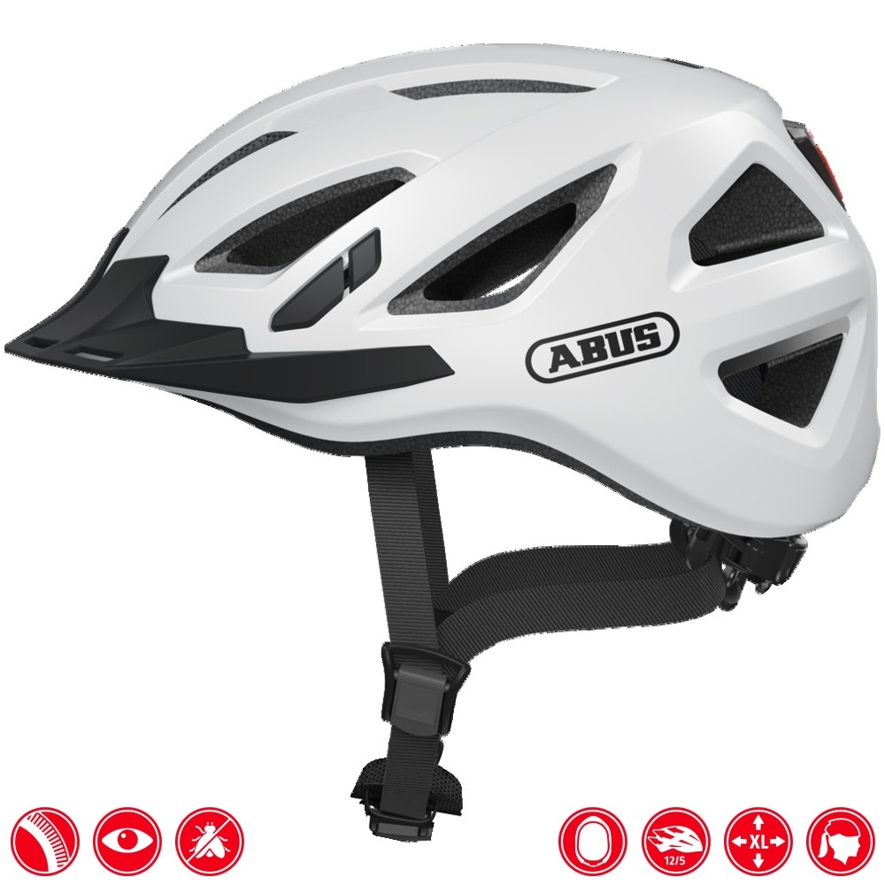 Kask rowerowy miejski Abus Urban-I 3.0 to jeden z najpopularniejszych kasków miejskich w Niemczech i Europie. Jest on ceniony zarówno przez kobiety, jak i mężczyzn, przez starszych i młodszych. Kask rowerowy miejski Abus Urban-I 3.0 jest świetnie wyposażonym miejskim kaskiem rowerowym z wieloma praktycznymi detalami. Funkcjonalna i przemyślana koncepcja sprawia, że kask rowerowy miejski Abus Urban-I 3.0 jest jednym z najpopularniejszych kasków tej marki. Za bezpieczeństwo pasywne odpowiada zintegrowane światło LED.