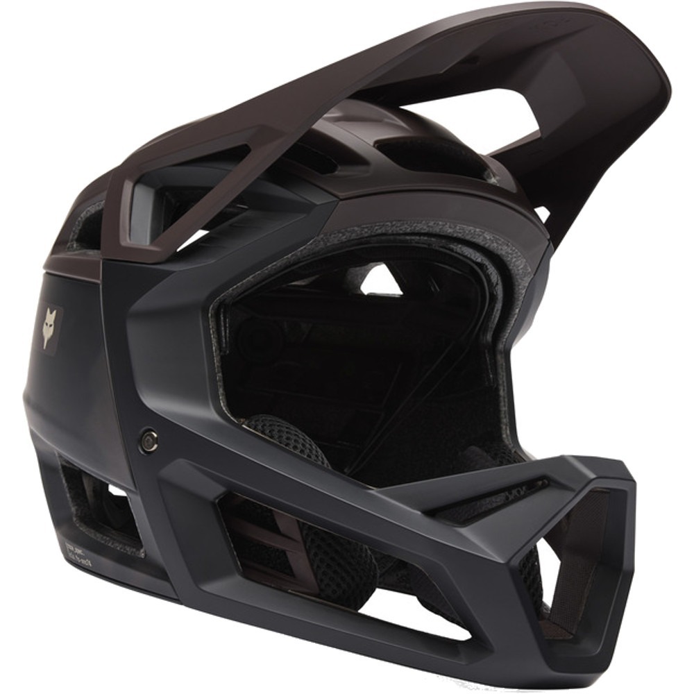 Kask rowerowy Fullface Fox Proframe RS Taunt MIPS dysponuje również 3-pozycyjnym regulowanym daszkiem chroniącym przed słońcem i deszczem, który jest w pełni kompatybilny z goglami rowerowymi. Na dodatek model w zestawie ma zdejmowany uchwyt do GoPro, który pomoże uchwycić kolarzowi każdy moment jego przejazdu.