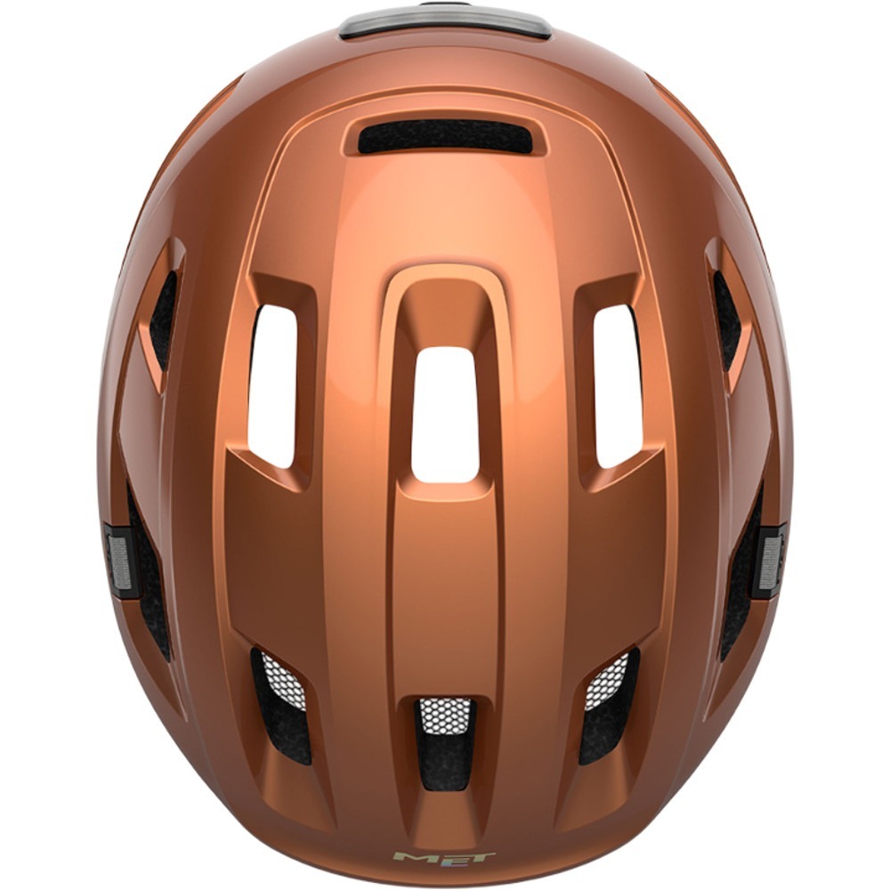 Kask rowerowy MET E-mob wykonano przy wykorzystaniu technologii In-mold, co oznacza, że wewnętrzna i zewnętrzna warstwa zostały trwale połączone już na etapie odlewania skorupy, co czyni konstrukcję wytrzymalszą oraz lepiej chroniącą głowę przed urazami. Ponadto zastosowanie In-mold pozwoliło na przeprowadzenie wewnątrz kasku skutecznie działającego systemu cyrkulacji powietrza (17 otworów), który doskonale chroni użytkownika przed przegrzaniem. Przednie otwory wentylacyjne wzbogacono o zintegrowaną siatkę chroniącą przed owadami.