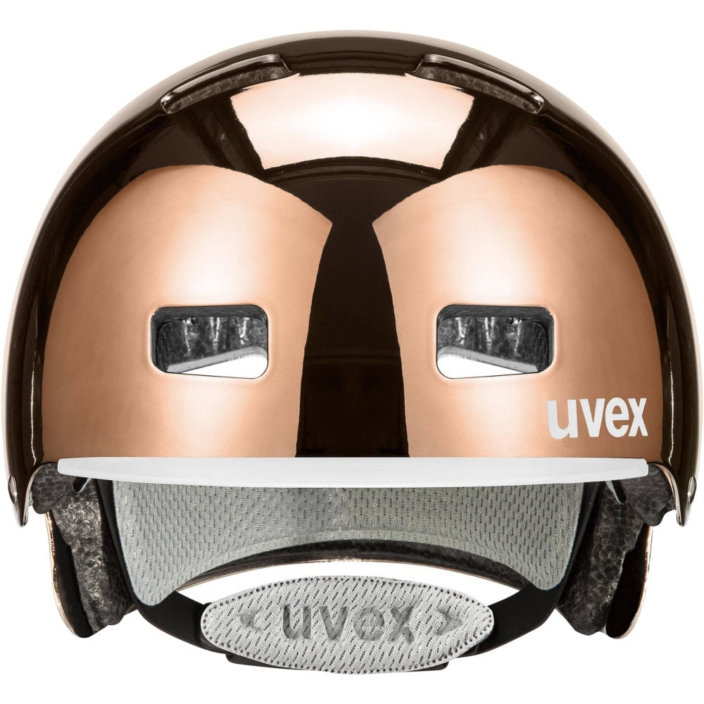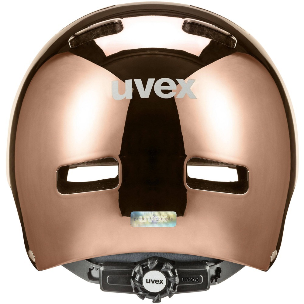 Limitowana edycja kasku Uvex HLMT 5 Bike Pro w kolorze rose chrome to gwarancja oryginalnego wyglądu. Zoptymalizowane otwory wentylacyjne zapewniają komfort, jednocześnie dodając ciekawego wyglądu. Kask rowerowy miejski Uvex HLMT 5 Bike Pro chrome przyciąga wzrok zarówno w dzień, jak i w nocy. Wyróżnia się on na tle pozostałych kasków swoją oryginalną kolorystyką. Ponadto sprawdzone technologie marki Uvex zapewniają ochronę na najwyższym poziomie.