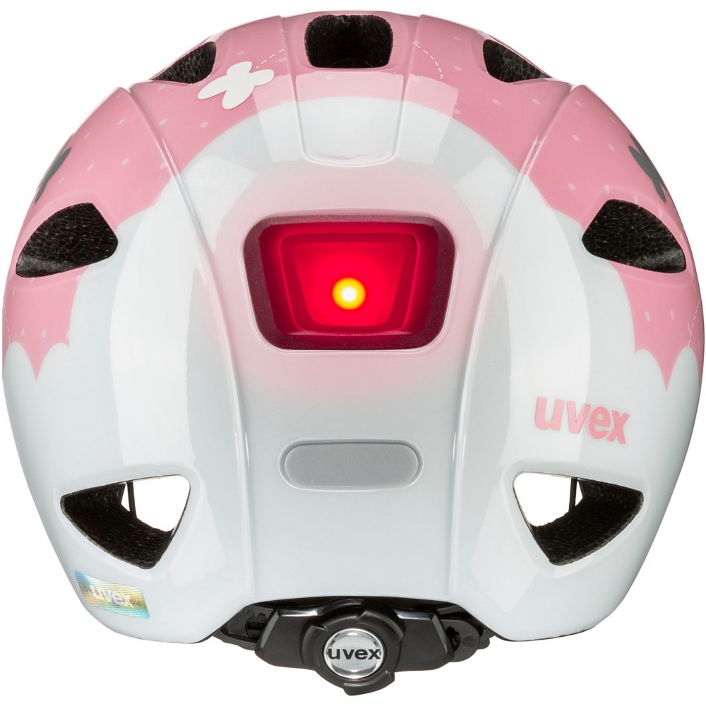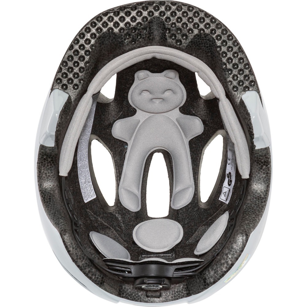Kask rowerowy dla dzieci Uvex Oyo style jest bardzo lekki. Innowacyjna osłona xTRA Shield w części przedniej ochrania wrażliwy obszar czoła malucha. Tylna osłona KID PROtect redukuje wibracje wytwarzane na nierównych ścieżkach przez fotelik dziecięcy, a także zapobiega zsuwaniu się głowy z oparcia fotelika. Zastosowanie technologii inmould zapewnia najwyższy stopień bezpieczeństwa. 10 kanałów wentylacyjnych zapewni dobrą cyrkulację powietrza pod kaskiem. Produkt wyposażony jest w wyjmowalną, oddychającą wyściółkę z misiem. Kask został wydłużony w części potylicznej, skroni oraz oklicach uszu, dzięki czemu zapewni odpowiednie dopasowanie oraz bezpieczeństwo, ochraniając najważniejsze części głowy.