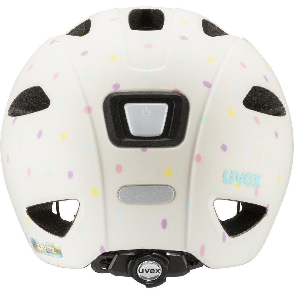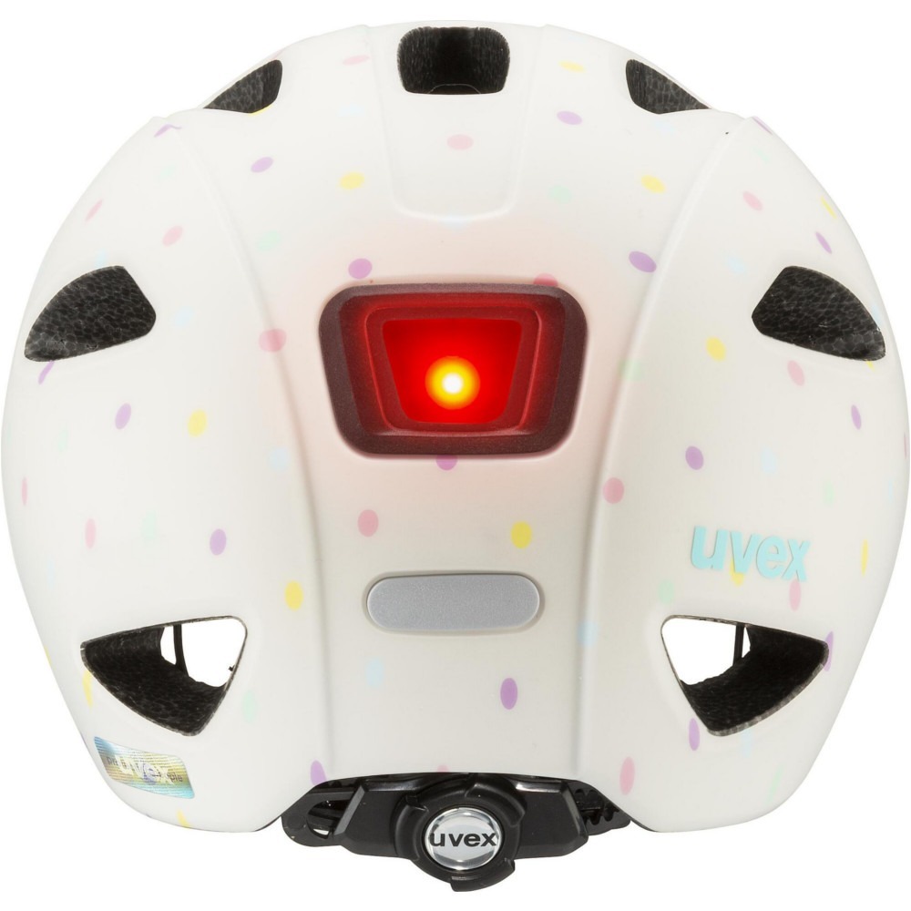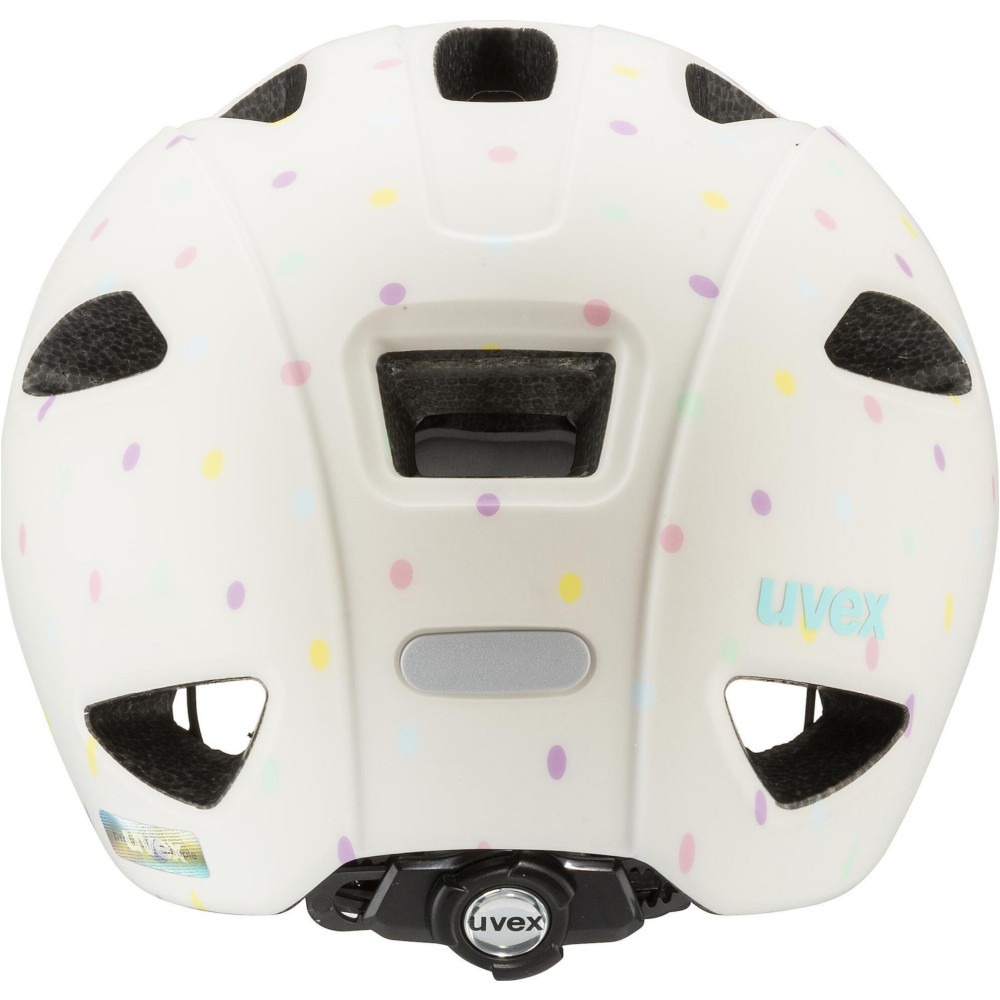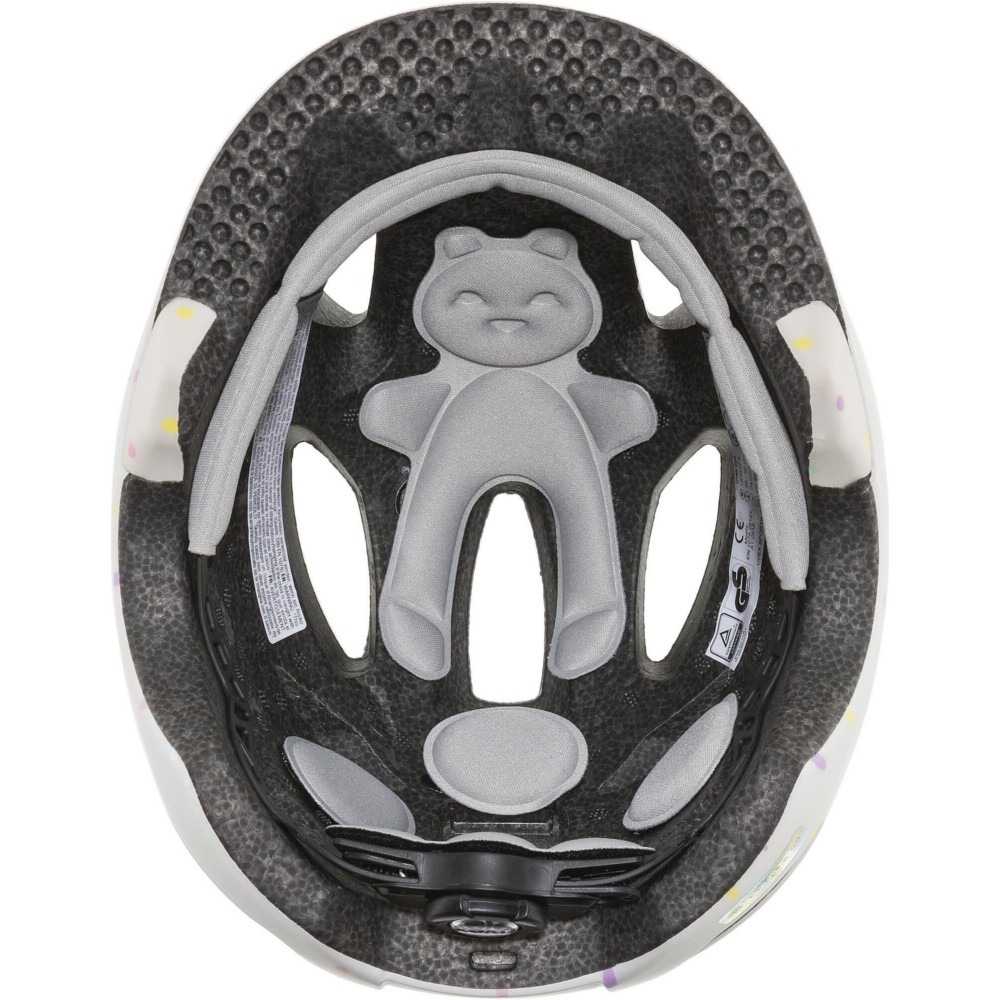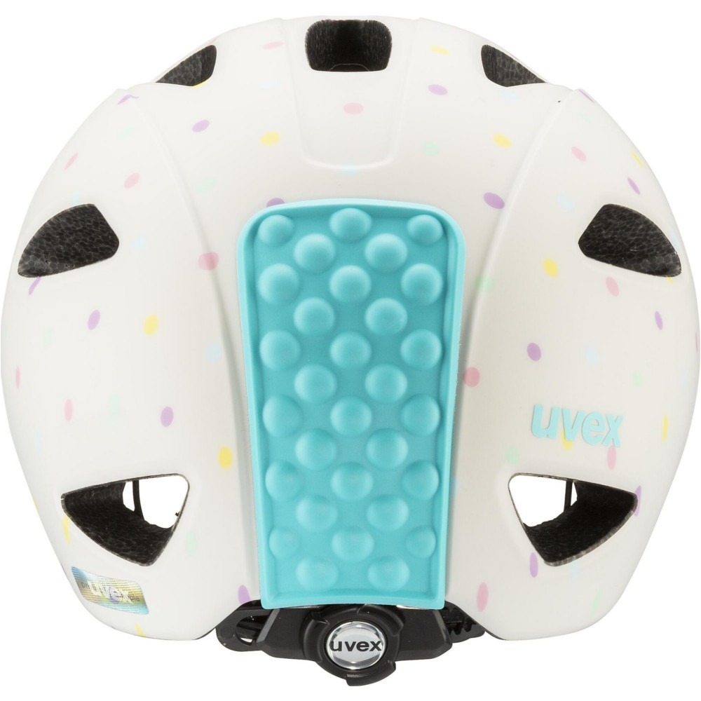Kask rowerowy dla dzieci Uvex Oyo style jest bardzo lekki. Innowacyjna osłona xTRA Shield w części przedniej ochrania wrażliwy obszar czoła malucha. Tylna osłona KID PROtect redukuje wibracje wytwarzane na nierównych ścieżkach przez fotelik dziecięcy, a także zapobiega zsuwaniu się głowy z oparcia fotelika. Zastosowanie technologii inmould zapewnia najwyższy stopień bezpieczeństwa. 10 kanałów wentylacyjnych zapewni dobrą cyrkulację powietrza pod kaskiem. Produkt wyposażony jest w wyjmowalną, oddychającą wyściółkę z misiem. Kask został wydłużony w części potylicznej, skroni oraz oklicach uszu, dzięki czemu zapewni odpowiednie dopasowanie oraz bezpieczeństwo, ochraniając najważniejsze części głowy.