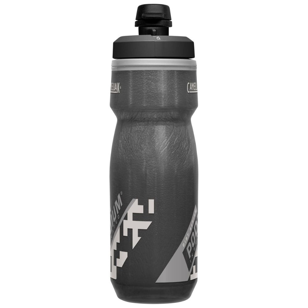 Bidon Camelbak Podium w wersji Dirt posiada osłonkę chroniącą ustnik przed zabrudzeniami podczas jazdy.