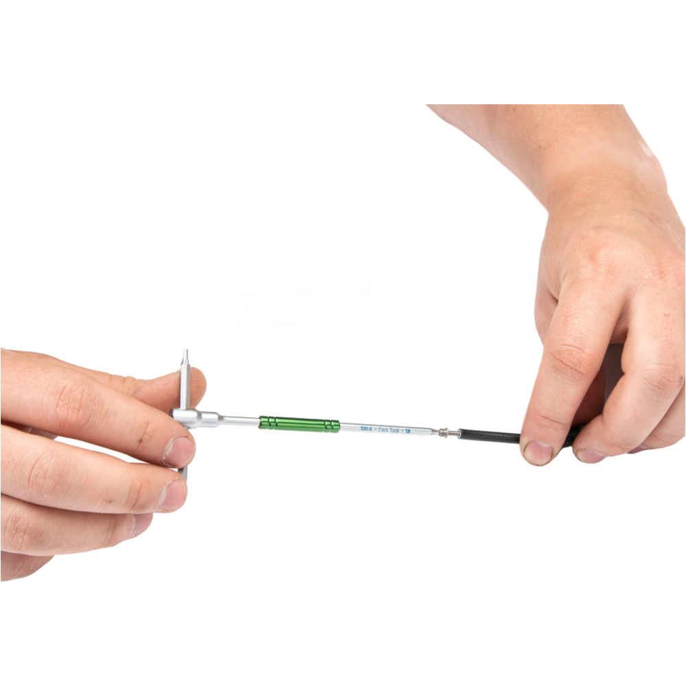 Klucz typu Torx wykonany z utwardzanej stali wraz z przesuwnym uchwytem typu "T" zapewniający większą dźwignię.