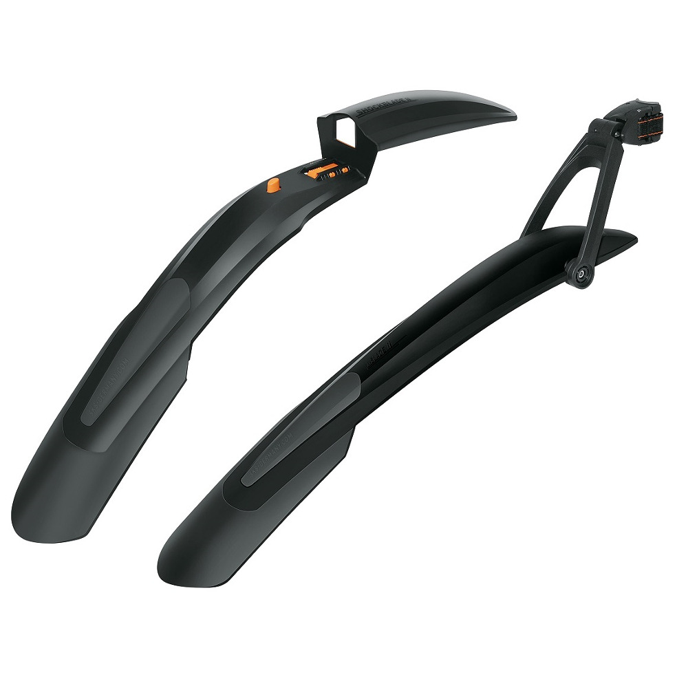 Zestaw błotników SKS MTB-Blade wykonany jest z dwuskładnikowego tworzywa sztucznego. Spojler nie tylko poprawia ochronę przed rozpryskami, ale dzięki miękkiemu plastikowi służy również jako ochrona krawędzi podczas wsiadania i zsiadania z roweru. System szybkiego mocowania ułatwia montaż zestawu i optymalne dopasowanie go do roweru górskiego. Błotnik na przód montowany jest za pomocą adaptera "quick release" z elementem rozporowym do trzonu widelca. Błotnik tylny montuje się za pomocą zacisku taśmowego.