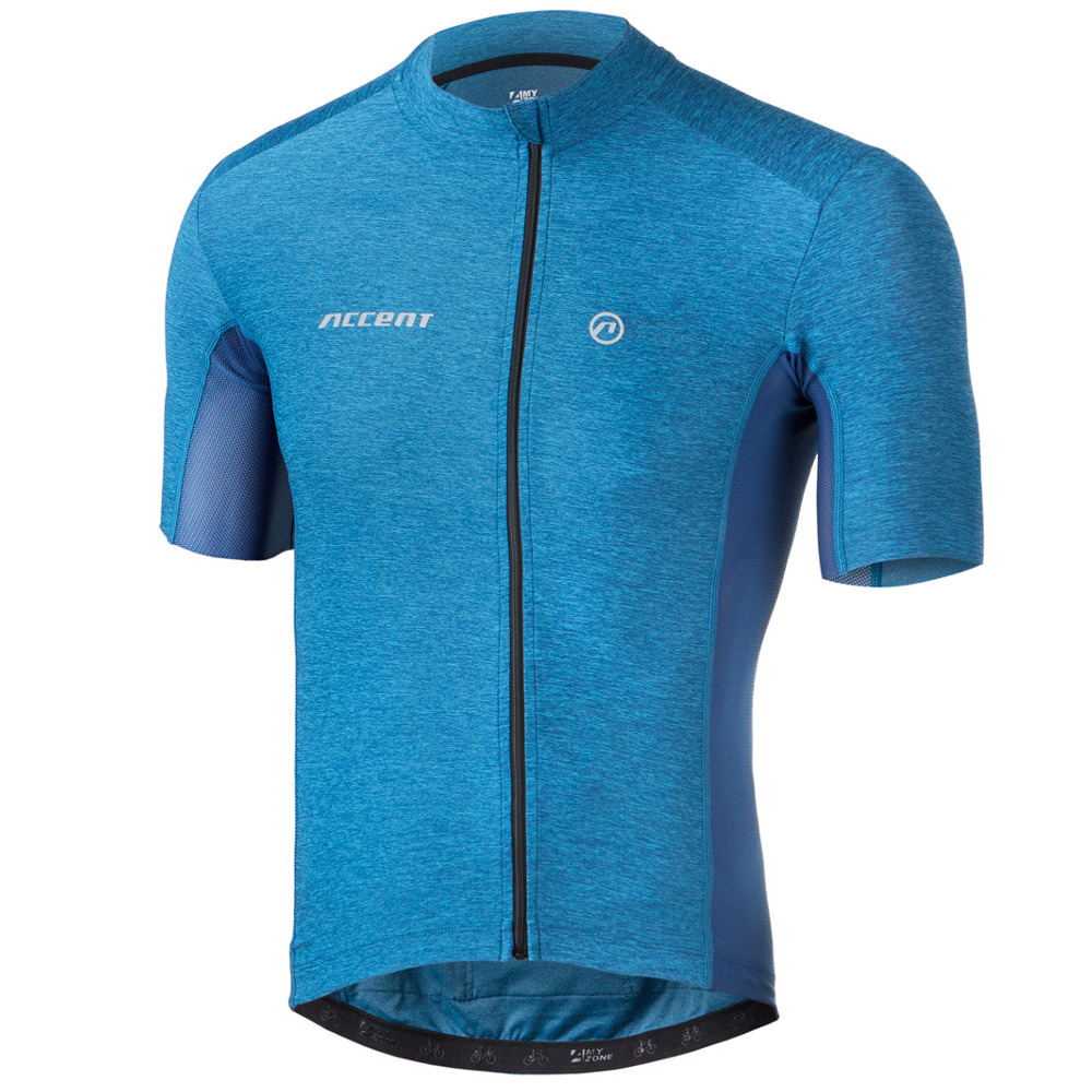 Męska melanżowa koszulka kolarska z krótkim rękawem Blend. Zaprojektowana przez markę Accent. Dostępna w dwóch wersjach kolorystycznych - niebieskiej oraz szarej.