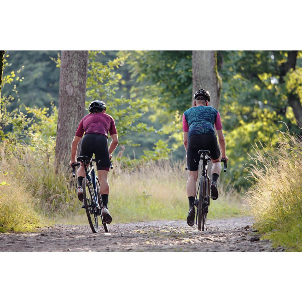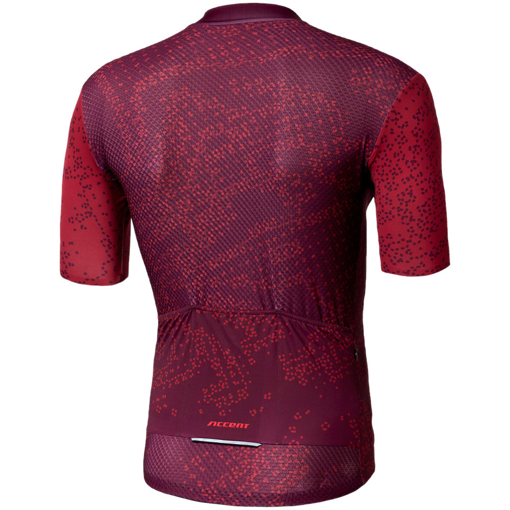 Koszulka kolarska z gravelowej serii Accent Freak. Wykonana z lekkiej, przewiewnej i miłej w dotyku dzianiny, używanej przez zawodowe grupy kolarskie. Doskonale odprowadza wilgoć dzięki swojej porowatej strukturze oraz termoaktywnym właściwościom, pozwalając na wyschnięcie koszulki w krótszym czasie. Zapewnia idealne dopasowanie do ciała dzięki zastosowaniu kombinacji elastycznych, rozciągliwych czterokierunkowo tkanin i bezszwowych rękawów. Przednia antypoślizgowa taśma zapobiega przesuwaniu się koszulki podczas jazdy. Ukryty zamek pozwala na pełen zadruk. Koszulka posiada trzy kieszenie na plecach.