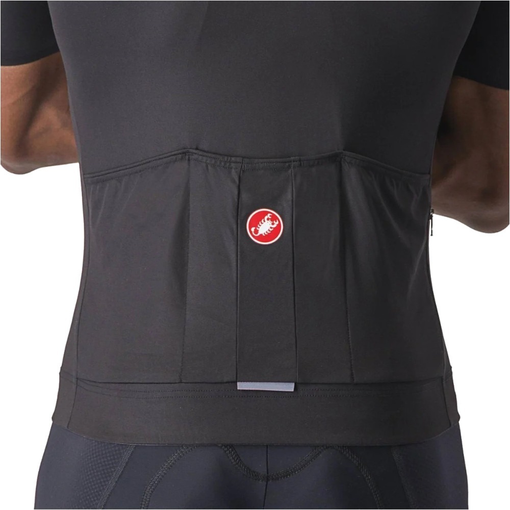 Włoska marka nie zapomniała także o użytecznych dodatkach. Z tyłu mieszczą się 3 klasyczne kieszenie na przekąski oraz jeszcze jedna zapinana na suwak do bezpiecznego przechowywania szczególnie cennych drobiazgów. Ponadto koszulka ma odblaskowe wstawki, dzięki którym będziesz lepiej widoczny w niepogodę i nocą, a tym samym poniesie się Twoje bezpieczeństwo na trasie.