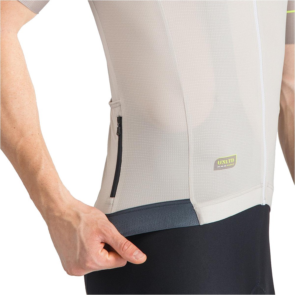 Koszulka charakteryzuje się nieco luźniejszym krojem w porównaniu do standardowych modeli szosowych, co przekłada się na większą swobodę ruchów i komfort noszenia, niezależnie od stylu jazdy. Praktyczne rozwiązania, takie jak elastyczny panel w środkowej kieszeni ułatwiający przechowywanie, zamek błyskawiczny YKK Vislon na całej długości oraz silikonowy ściągacz zapobiegający podwijaniu koszulki, sprawiają, że Unlimited Endurance 2 to niezawodny wybór na każdą trasę.