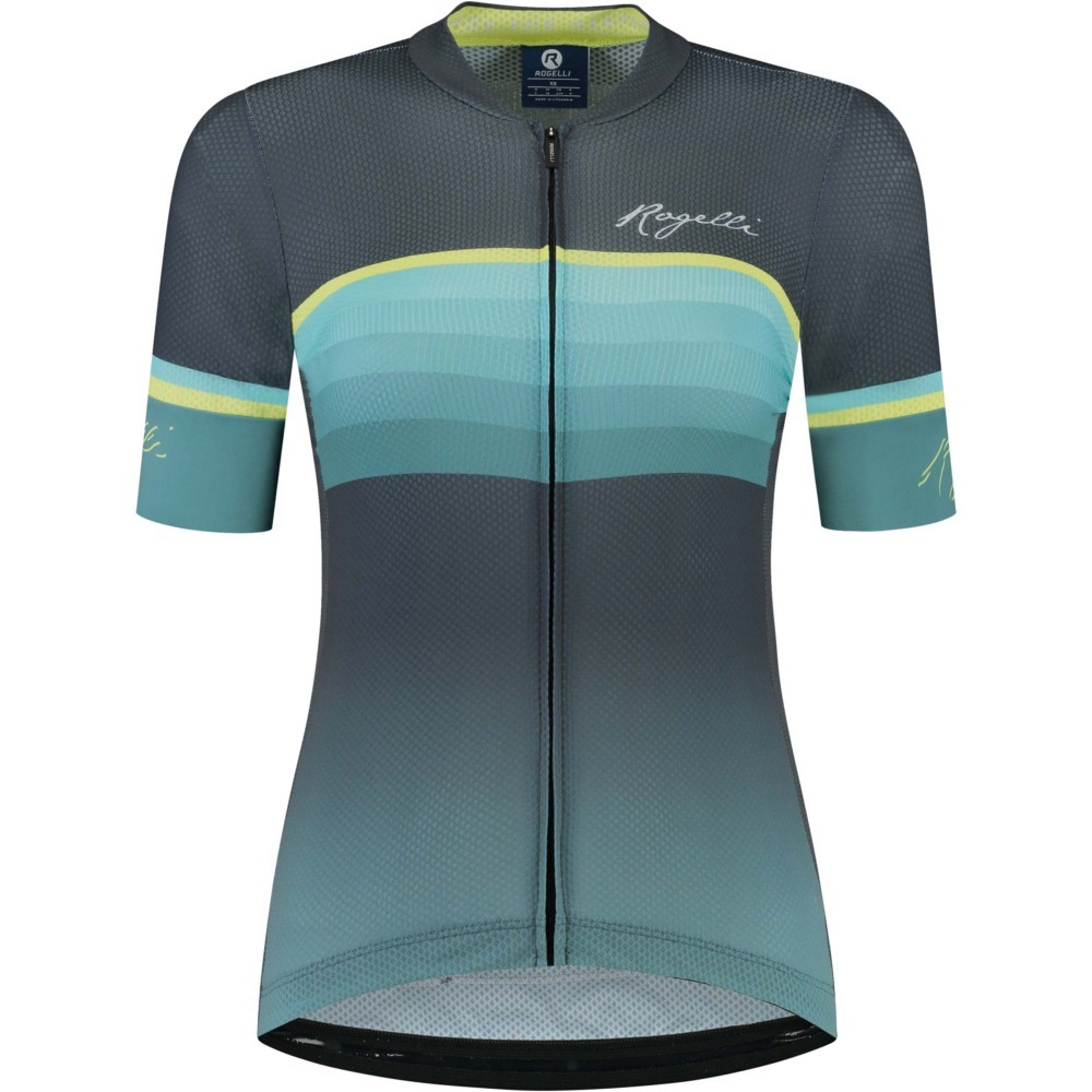 Koszulka rowerowa Rogelli Impress II z krótkim rękawem wykonana została we Włoszech z wytrzymałego i przyjemnego w dotyku materiału. Jest lekka, oddychająca i szybko wysycha, a dodatkowo chroni przed szkodliwym promieniowaniem UV. Wyposażona została w specjalne, siateczkowe wkładki, które umieszczono na panelach bocznych. Zapewniają one optymalną wentylację, co przekłada się na duży komfort jazdy nawet w gorące, letnie dni.