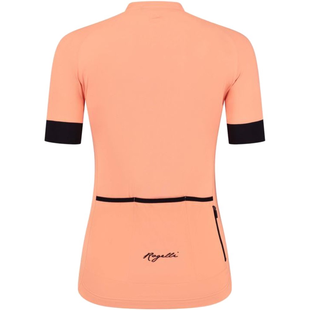 Rogelli Modesta to stylowa koszulka rowerowa o kroju typu Comfort, dzięki któremu jest nieco luźniejsza. Koszulka została wykonana z materiału Dynacool, który jest wyjątkowo miękki i przyjemny w dotyku. Materiał ten cechuje się także bardzo dobrą oddychalnością i szybko wysycha, co zapewnia wysoki komfort podczas treningów. Koszulka z tyłu posiada wygodną w użytkowaniu, potrójną kieszeń oraz dodatkową kieszonkę na zapinaną zamek, która świetnie sprawdzają się do przechowywania drobniejszych przedmiotów. W pasie koszulki umieszczono antypoślizgowy nadruk, dzięki któremu koszulka zostaje na swoim miejscu i nie przesuwa się w trakcie jazdy. Koszulka posiada krótkie rękawki zakończone 5-centymetrowymi elastycznymi mankietami, które zapewniają im odpowiednie przyleganie do skóry.