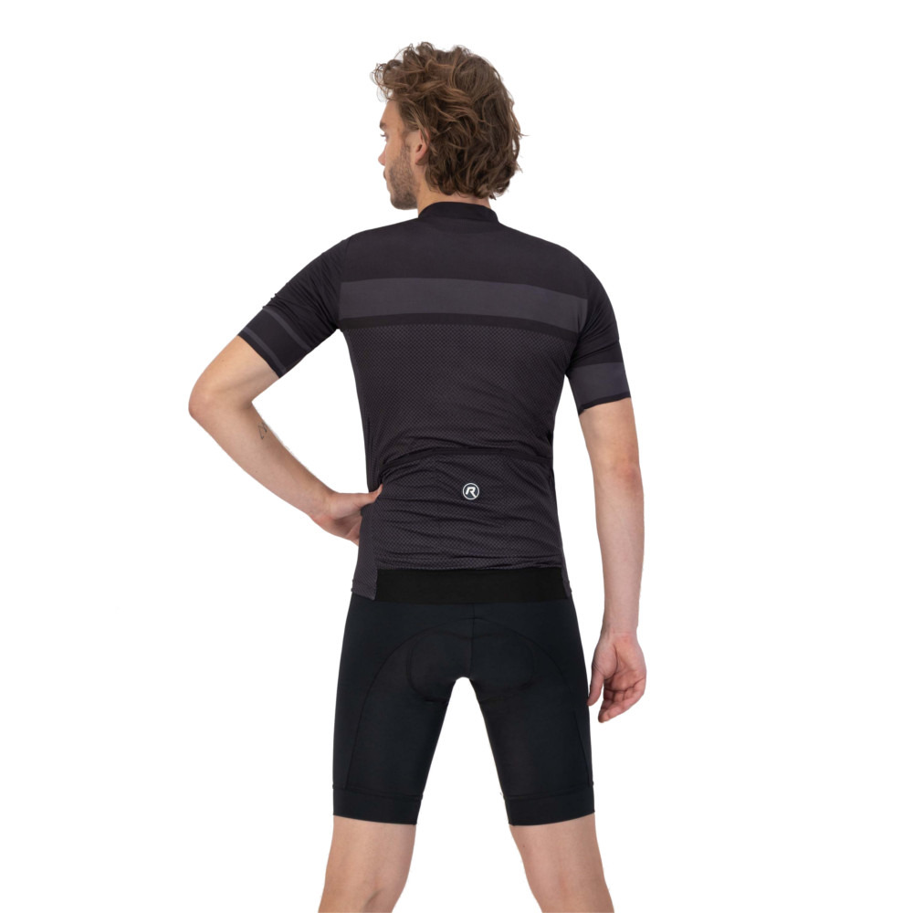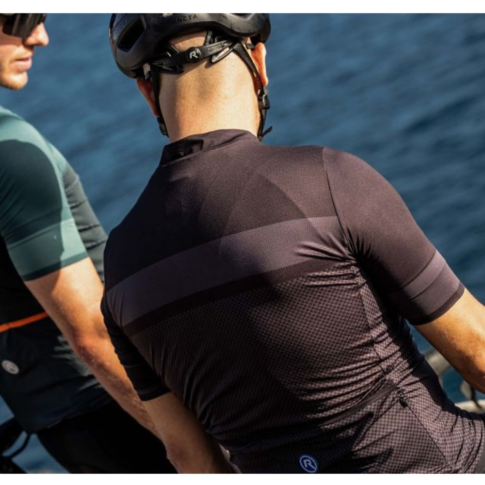 Rogelli Block to koszulka kolarska wykonana z rozciągliwej w 4 kierunkach tkaniny Dynaflex oraz oddychającej siateczki. Tkaniny te doskonale sprawdzają się do produkcji letniej odzieży sportowej, zapewniając ci naturalny komfort ruchów oraz skuteczną wymianę ciepła podczas jazdy. Koszulka posiada cięte laserowo rękawy z bezszwowymi zakończeniami, które nie uciskają i nie podrażniają skóry. Umieszczony z tyłu silikonowy pasek sprawia, że koszulka pozostaje cały czas na swoim miejscu i nie przesuwa się podczas jazdy. W tylnej części koszulki umieszczono potrójną kieszeń oraz dodatkową kieszonkę na zamek, które świetnie sprawdzają się do przechowywania najpotrzebniejszych rzeczy podczas rowerowych wypraw. Rogelli Block została także wzbogacona o odblaskowe elementy, które sprawią, że będziesz lepiej widoczny i bezpieczny na drodze.
