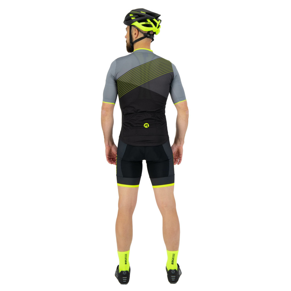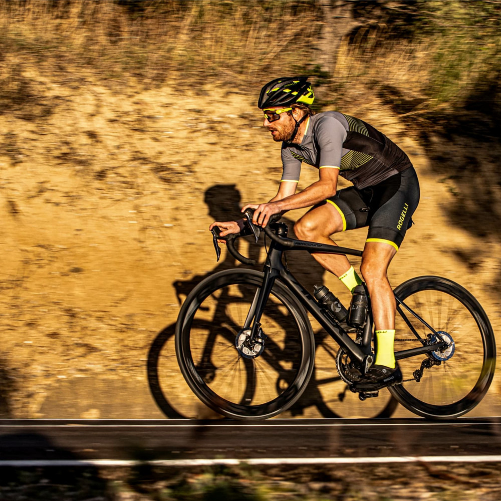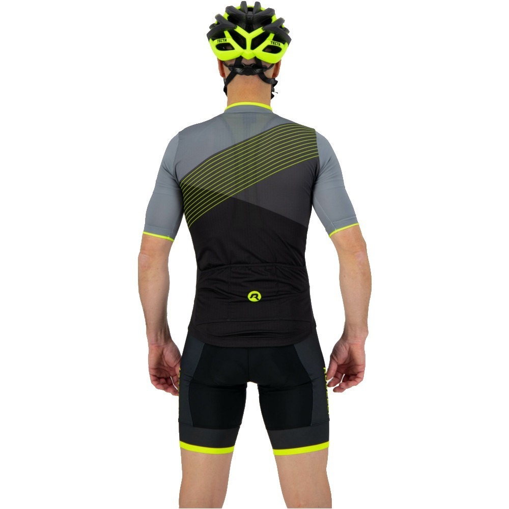 Rogelli Spike to koszulka z krótkim rękawkiem, która doskonale dopasowuje się do ciała zapewniając naturalną swobodę ruchów oraz wysokie właściwości aerodynamiczne, dzięki zastosowaniu kroju typu Pro i rozciągliwego w czterech kierunkach materiału Artico. Boki, pachy i tył koszulki zostały wykonane z elastycznej siateczki, która gwarantuje bardzo dobrą oddychalność, więc masz gwarantowany komfort termiczny i czujesz się w niej jak w drugiej skórze. Rękawy z elastycznym mankietem, a także silikonowy paek w pasie trzymają ubranie cały czas na swoim miejscu, a kiedy ono nie przesuwa się podczas jazdy ty możesz skupić się na trasie i wynikach. Ukryty suwak wszyty na całej długości ułatwia szybkie zakładanie i zdejmowanie Rogelli Spike. Tylna część koszulki została wyposażona w potrójną kieszeń, która doskonale sprawdza się do przechowywania podczas jazdy rzeczy, które chcesz mieć zawsze przy sobie.