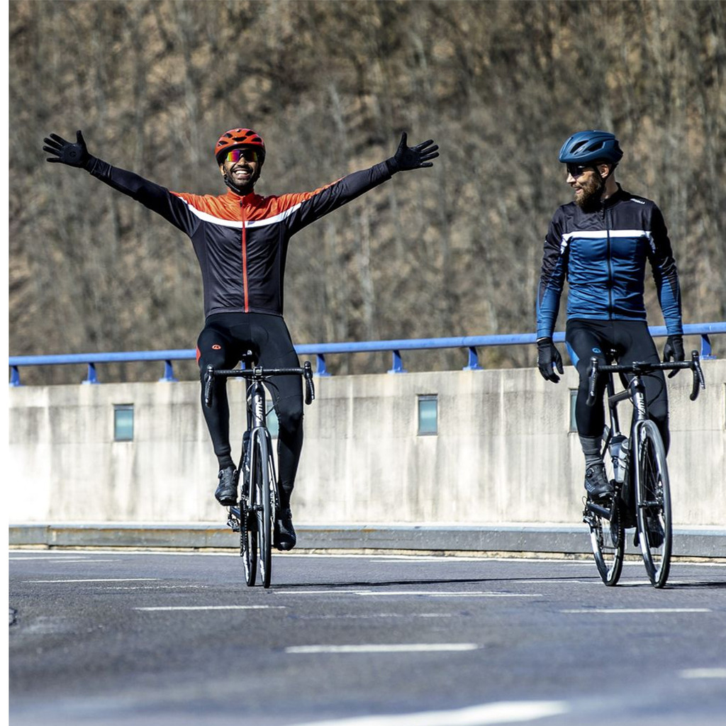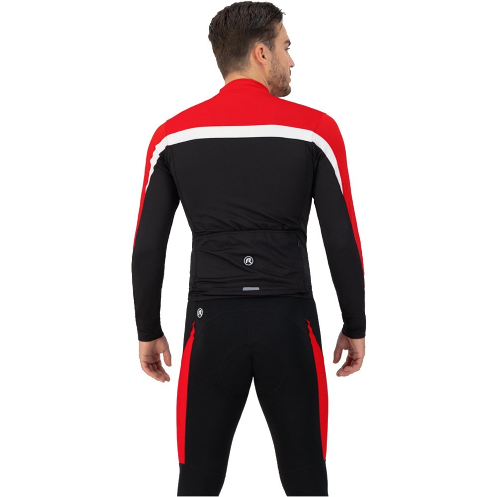 Rogelli Course to koszulka rowerowa z długim rękawem, która świetne dopasowuje się do ciała przez zastosowanie kroju typu Race oraz rozciągliwego w czterech kierunkach materiału Dynatherm Flex, dzięki czemu masz zapewnioną naturalną swobodę ruchów. Umieszczony w pasie silikonowy nadruk oraz elastyczne mankiety na końcach rękawów nie tylko zapewniają jeszcze lepsze dopasowanie do ciała, ale także sprawiają, że ubranie pozostaje cały czas na swoim miejscu i nie przesuwa się podczas jazdy - komfort, który pozwala skupić się na trasie i wynikach. Suwak na całej długości koszulki ułatwi ci szybkie wkładanie i zdejmowanie. W tylnej części koszulki umieszczono potrójną kieszeń, więc najpotrzebniejsze przedmioty możesz mieć zawsze przy sobie. Dodatkowa kieszeń na zamek pozwoli ci zabezpieczyć przed zgubieniem najcenniejsze drobiazgi. Dodatkowo, na powierzchni koszulki znajdują się odblaskowe elementy, które poprawią twoją widoczność i bezpieczeństwo podczas jazdy. Rogelli Course zawiera wszystkie funkcje, jakich potrzebujesz do komfortowej jazdy czy treningów. Idealnie sprawdzi się dla początkujących rowerzystów!
