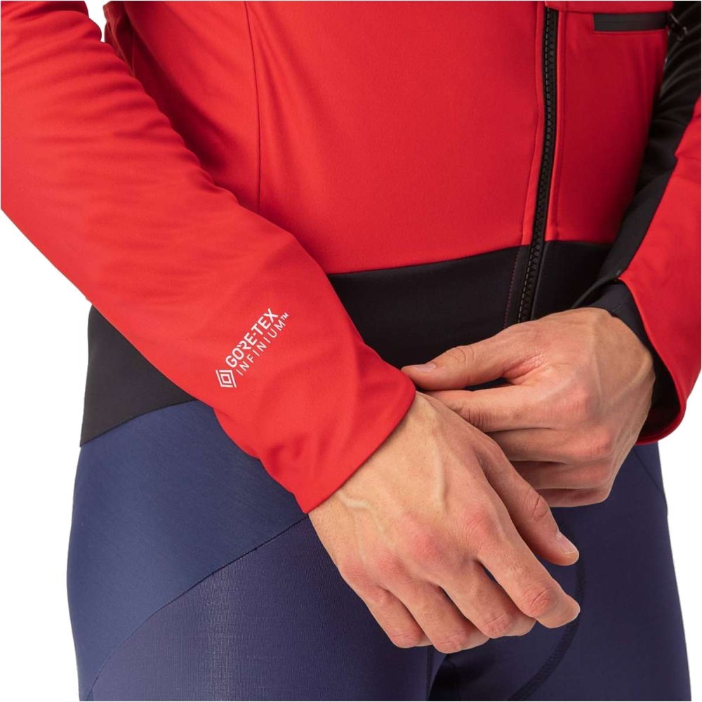 Warto zauważyć, że wykorzystana tkanina GORE-TEX INFINIUM WINDSTOPPER 150 w połączeniu z zastosowaną przez producenta technologią Rain or Shine sprawiają, że kurtka rowerowa Castelli Alpha Doppio RoS gwarantuje także wysoki poziom wodoodporności.