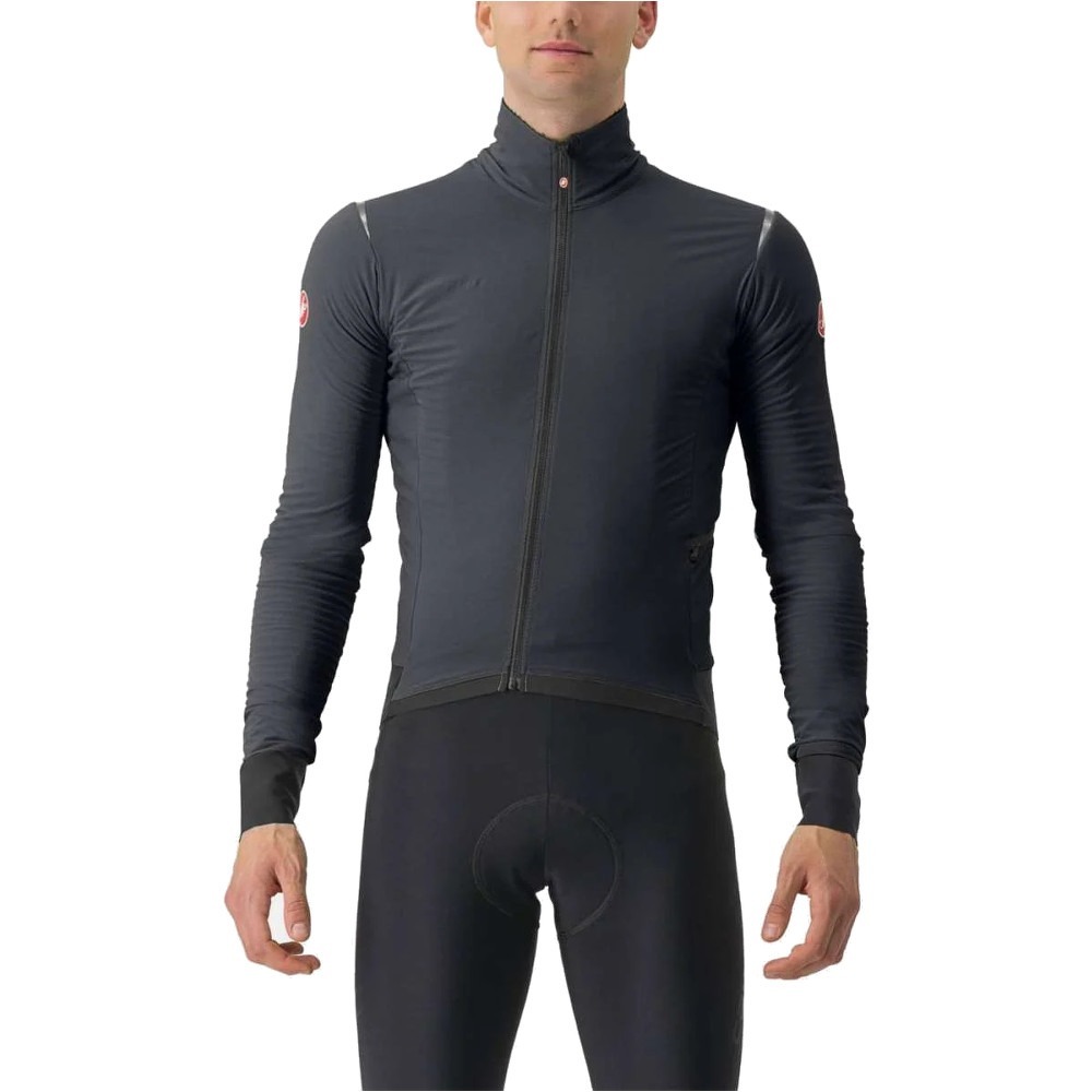 Projekt kurtki rowerowej Castelli Alpha Flight RoS oparto na dwuwarstwowej konstrukcji Alpha. Z zewnętrznej strony włoska marka wykorzystała tkaninę Nano Flex, która dobrze blokuje wiatr, ale nie ma membrany, więc jednocześnie daje maksymalną cyrkulację powietrza. Z kolei we wnętrzu kurtki rowerowej znajduje się warstwa izolacyjna Polartec Alpha, której zadaniem jest zapewnienie kolarzowi dodatkowego ciepła.