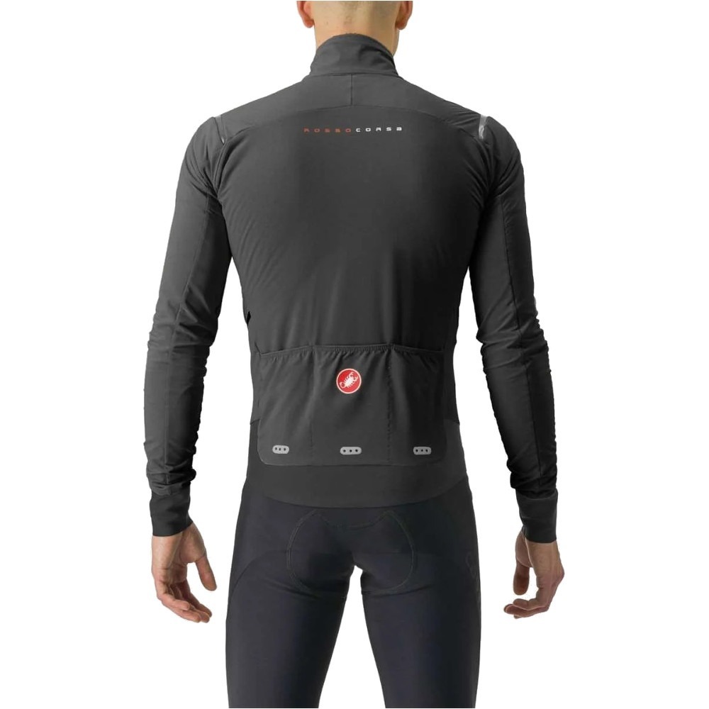 Dla wygody użytkownika producent umieścił z przodu kurtki rowerowej Castelli Alpha Flight RoS kieszonkę boczną zapinaną na zamek błyskawiczny, które świetnie sprawdzi się do przechowywania najcenniejszych przedmiotów. Z kolei w tylnej części znalazły się 3 kieszenie wycinane laserowo, do których kolarz ma zawsze łatwy dostęp w czasie jazdy.