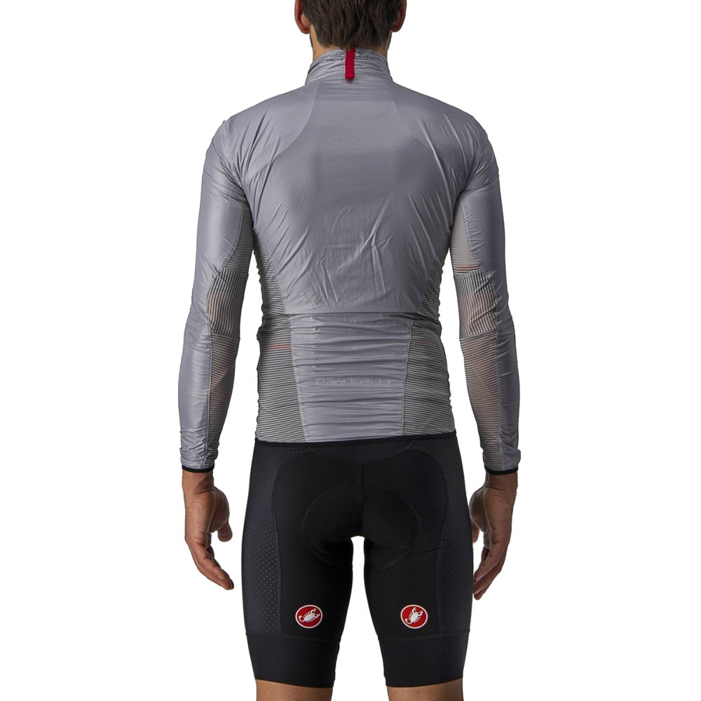 Castelli Aria Shell to kurtka kolarska zapewniająca dobrą ochronę przed wiatrem. Doskonale dopasowuje się do sylwetki za sprawą elastycznej siateczki, z której wykonano wewnętrzną część rękawów. Dzięki temu nie ogranicza ruchów i zapewnia wygodę noszenia. Przednia część wyprodukowana została z mikrofibry, jest więc miła w dotyku i komfortowa. Kurtka rowerowa Castelli Aria Shell jest kompaktowa i bez problemu można ją składać do zintegrowanego worka. Po tym zabiegu zmieści się nawet w tylnej kieszonce koszulki rowerowej, więc bez problemu możesz zabierać ją ze sobą, by mieć pewność, że pogoda Cię nie zaskoczy. Dla poprawy twojego bezpieczeństwa, producent umieścił na kurtce elementy odblaskowe, które znacznie zwiększają widoczność na drodze. Kurtka na rower Castelli Aria Shell zapinana jest na całej długości na wytrzymały zamek YKK Vislon.