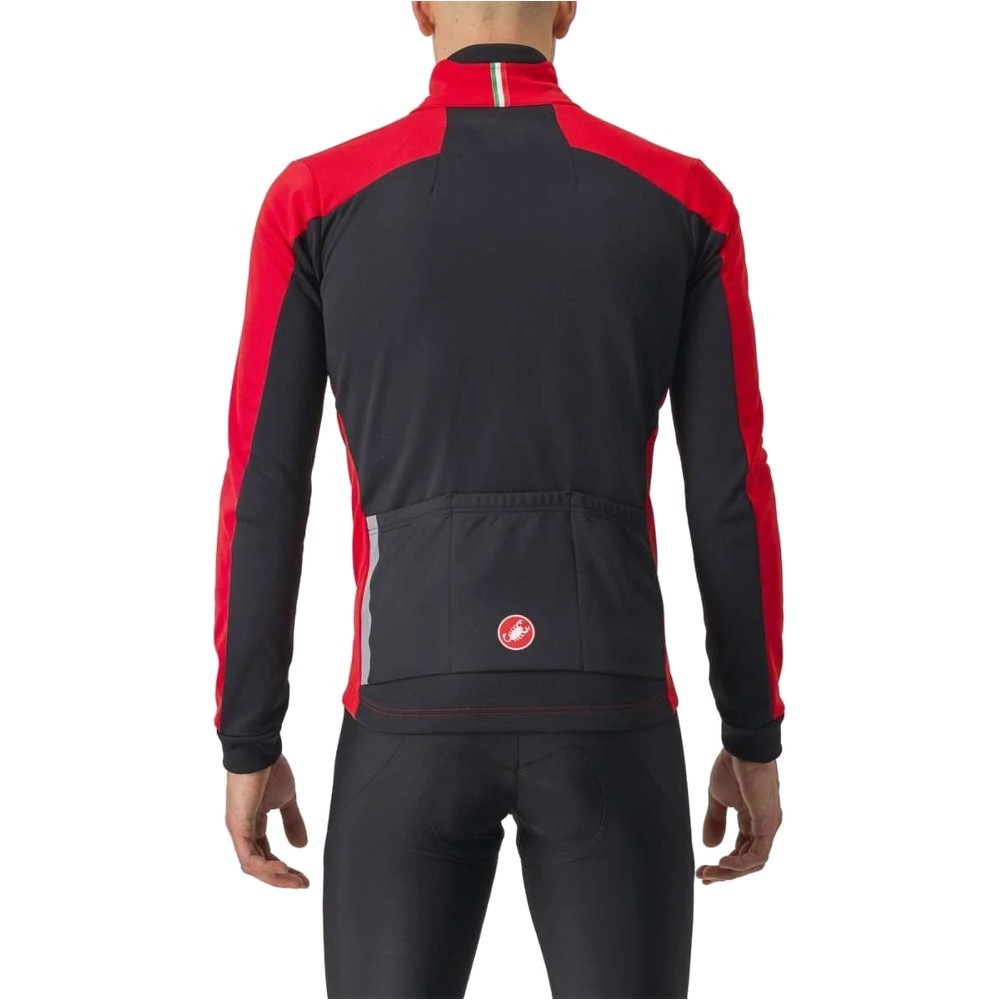 Projektanci z włoskiej marki Castelli postawili w tym ubraniu na dwuczęściową konstrukcję. Przednia część kurtki oraz jej rękawy wykonano przy użyciu GORE-TEX INFINIUM WINDSTOPPER X-MID. Materiał ten zapewnia wyjątkowo skuteczną cyrkulację powietrza, a do tego świetnie chroni przed podmuchami wiatru. Z kolei tył kurtki rowerowej Castelli Entrata wyposażono w ciepły polar.