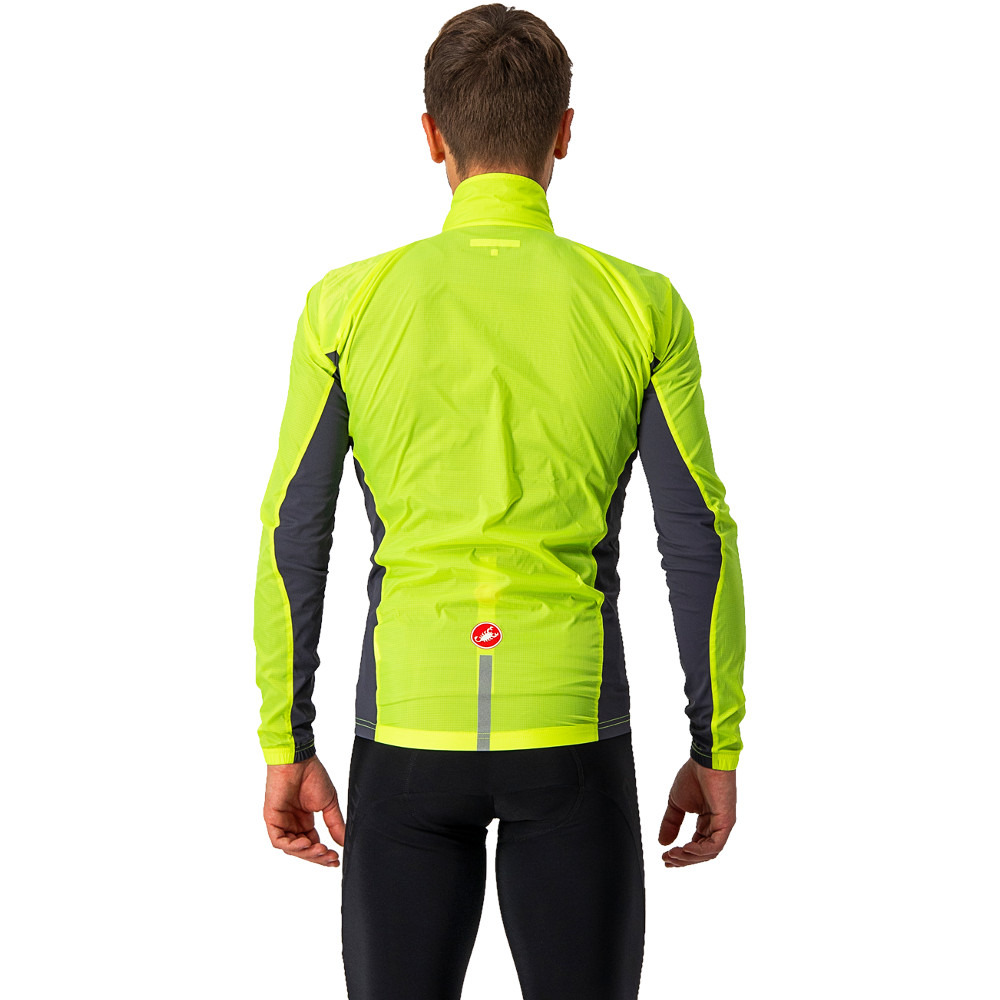 Castelli Squadra Stretch to kurtka przeciwwiatrowa i przeciwdeszczowa, która świetnie sprawdzi się jako zabezpieczenie przed lekkim deszczem podczas treningu. Kompaktowe rozmiary po złożeniu pozwalają na schowanie kurtki do tylnej kieszonki. Boczne panele wykonano z elastycznego materiału w celu poprawy wentylacji oraz lepszego dopasowania. Kurtka jest wyposażona w zamek Camlok oraz elementy odblaskowe.