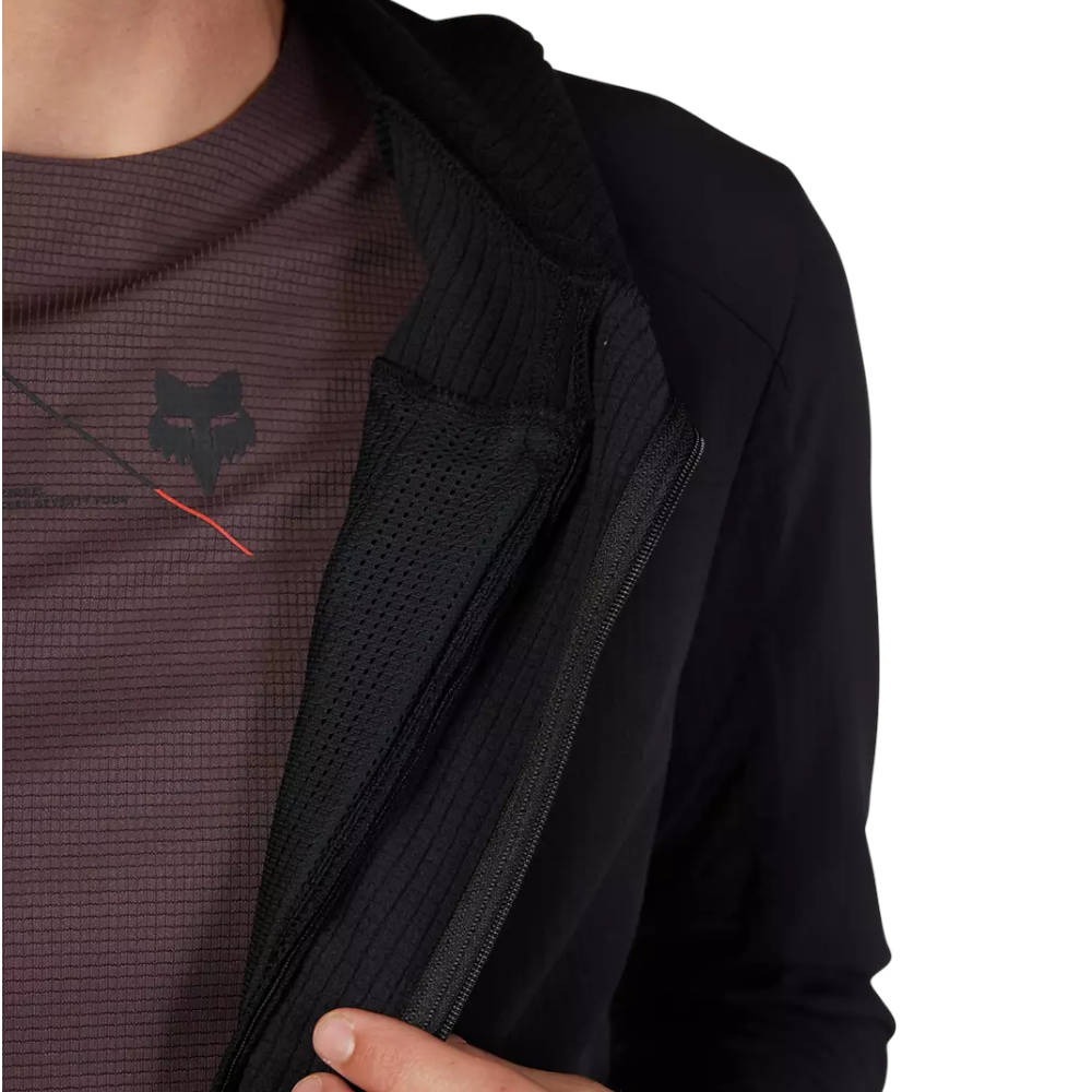 Aby skuteczniej chronić cyklistę przed nieprzyjemną pogodą, Fox postanowił wzbogacić model o kaptur osłaniający głowę i szyję. Jest on zoptymalizowany w taki sposób, aby łatwo mieścił się pod kaskiem.