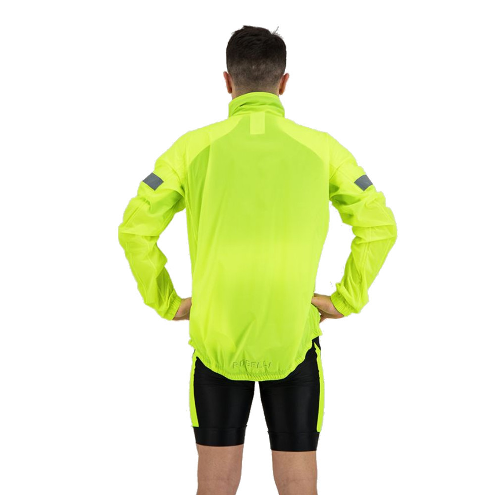 Kurtka przeciwdeszczowa Rogelli Cloud doskonale nadaje się na letnie, deszczowe dni. Wykonana jest z wysokiej jakości oddychającego materiału Aqualite, który charakteryzuje się właściwościami wodoodpornymi oraz wiatroodpornymi. Zapewni ci to komfort jazdy nawet przy wietrznej i deszczowej pogodzie. Kurtka rowerowa przeciwdeszczowa Rogelli Cloud posiada krój typu Race, który dzięki wydłużonej części tylnej jest dobrze dopasowany do sylwetki kolarza i świetnie chroni plecy przed przemoknięciem od wody tryskającej spod kół. W dolnej części tylnego panelu zastosowano również silikonowy pasek, który zapobiega przesuwaniu się kurtki, a dodatkową ochronę przed deszczem zapewniają klejone szwy i wodoodporny zamek. Kurtka rowerowa Rogelli Cloud możne być szybko zwinięta do wewnętrznej kieszeni, dzięki czemu po złożeniu zajmuje niewiele miejsca i możesz ją łatwo wszędzie zabrać ze sobą. Kurtka posiada wodoodporne kieszenie, w których bezpiecznie przechowasz swoje drobiazgi, np. telefon. Na ramionach znajdują się odblaskowe paski, które znacznie zwiększają widoczność na drodze i przyczyniają się do poprawy twojego bezpieczeństwa.