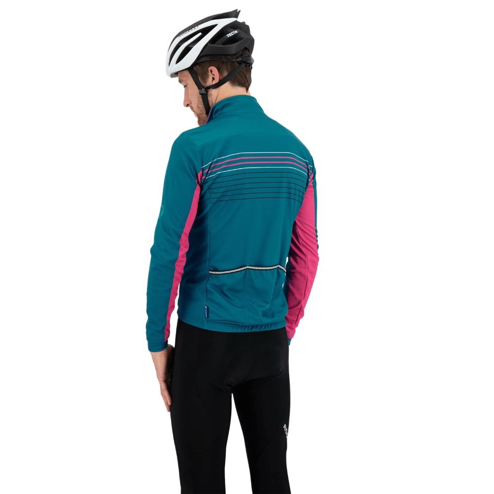 Softshellowa kurtka rowerowa Rogelli Kalon posiada krój typu Pro, który dobrze dopasowuje się do ciała. W przedniej części zastosowano wiatroodporną membranę Windtex, która ochroni cię przed wychłodzeniem, zatrzymując wiatr. Panel tylny wykonano z materiału Sensor, który zapewnia dobrą termoregulację, dzięki czemu nie przegrzejesz się. Szerokie mankiety i kołnierz dobrze przylegają do ciała a silikonowe wykończenia dołu zapobiegają przesuwaniu się kurtki nawet w czasie intensywnego treningu. Jednocześnie, takie rozwiązanie nie pozwala, aby chłód dostał się do wewnątrz.