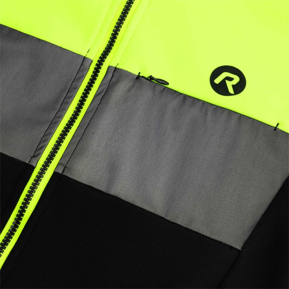 Szary pas przechodzący przez odcinek piersiowy zarówno z przodu, jak i z tyłu jest odblaskowy.