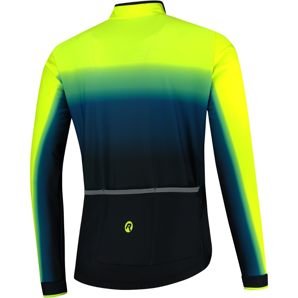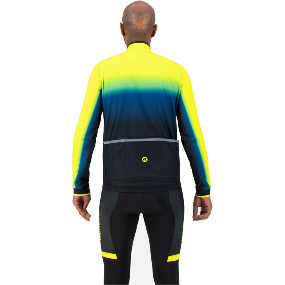 Bluza Rogelli Horizon bardzo dobrze sprawdza się jako okrycie na chłodne wiosenne, jesienne a nawet zimowe dni. Do wykonania przodu bluzy oraz rękawów wykorzystano tkaninę Windtex Everest, która wyróżnia się właściwościami wiatroszczelnymi i gwarantuje bardzo dobrą ochronę przed przedostaniem się chłodnych podmuchów wiatru do wnętrza bluzy. Z kolei tył Rogelli Horizon wykonano z dobrze oddychającego materiału Dolomiti. Pas z silikonowym nadrukiem oraz elastyczne mankiety nie tylko umożliwiają jeszcze lepsze dopasowanie ubrania do ciała, ale także sprawiają, że bluza pozostaje cały czas na swoim miejscu i nie przesuwa się w trakcie jazdy. Tylna część bluzy posiada także komfortową w użyciu, potrójną kieszeń oraz dodatkową, wodoodporną kieszonkę z zapięciem na zamek. Stwarza to idealną przestrzeń do przechowywania potrzebnych drobiazgów. Tylna kieszeń zyskała odblaskowe wykończenie, które zapewnia lepszą widoczność rowerzysty na drodze. Piękny gradient kolorów zaispirowany został zachodem słońca.