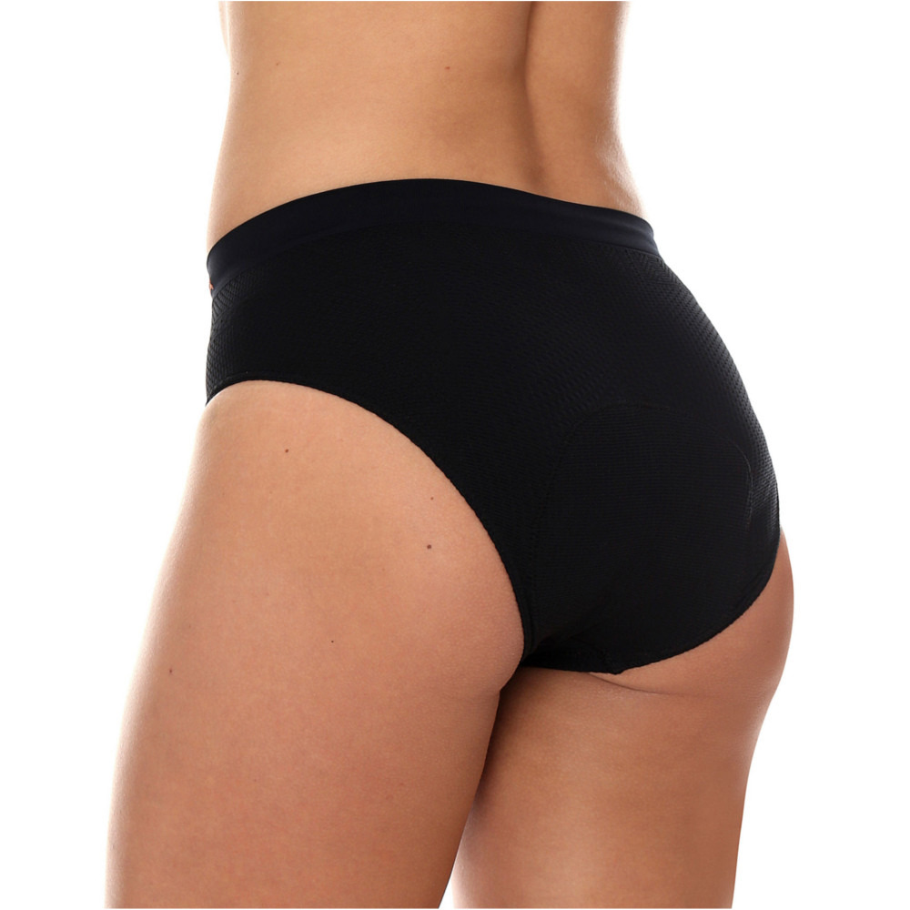 Majtki damskie z wkładką rowerową to uniwersalna i funkcjonalna bielizna termoaktywna, idealna jako podstawowa warstwa ubioru. Wykonana w technologii bezszwowej z ultralekkiej i cienkiej dzianiny. Dwuwarstwowa budowa dzianiny zapewnia szybszy odbiór nadmiaru wilgoci i wspomaga naturalną termoregulację organizmu. Skutecznie utrzymuje właściwą temperaturę i chroni zarówno przed przegrzaniem jak i wychłodzeniem organizmu. Perfekcyjne dopasowanie i przyleganie do kształtu ciała wraz z trójwymiarową konstrukcją dzianiny sprawia, że między ciałem a dzianiną tworzą się dodatkowe kanały cyrkulacji powietrza. Dzięki temu bielizna w innowacyjnej technologii 3D latem zwiększa wentylację organizmu, a zimą gromadzi ciepłe powietrze, co tworzy naturalną strefę termoizolacji i chroni przed wyziębieniem. Dodatkowo konstrukcja oparta na modelu trójwymiarowej siatki kilkukrotnie zwiększa powierzchnię odbioru wilgoci, której nadmiar odprowadza na zewnątrz. To pozwoli użytkownikowi zachować suchość oraz świeżość. Miękka dzianina nie krępuje ruchów i chroni przed otarciami.