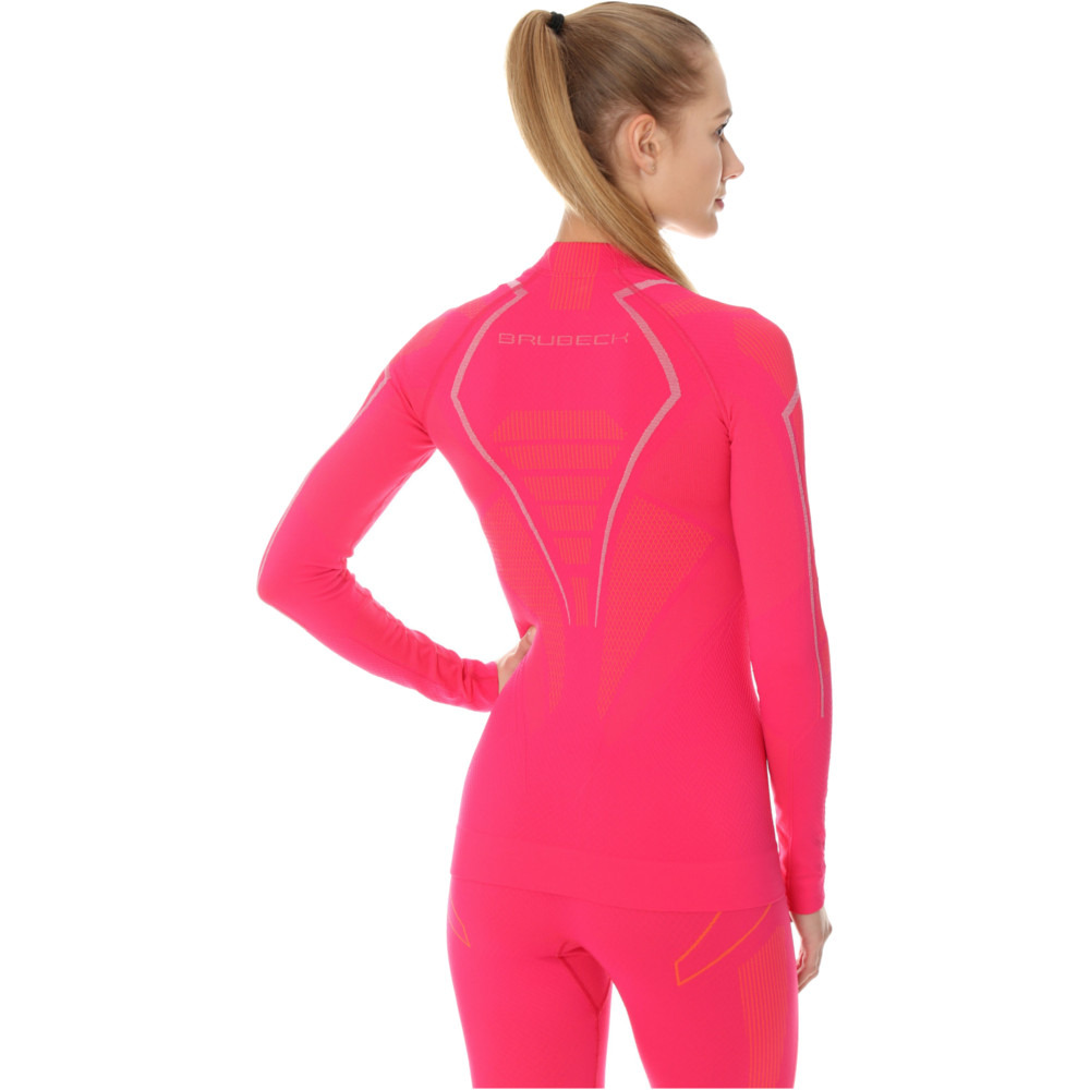 Damska bluza termoaktywna Brubeck Thermo to doskonała propozycja dla kobiet, które uprawiają sporty zimowe. Bluza wykonana jest z funkcyjnych mikrowłókien, co nie tylko zapewni Ci optymalną temperaturę ciała, ale zapewni także uczucie suchości i świeżości. W produktach z kolekcji Thermo wzmocniono odczucie ciepła, stosując przędze Nilit Innergy, która posiada minerały zamieniające ciepłotę Twojego organizmu, w promienie podczerwone, które wnikają głęboko pod skórę. Bluza jest pierwszą warstwą zakładaną bezpośrednio na ciało. Wykonana jest w dwuwarstwowej technologii bezszwowej. Wewnętrzna warstwa szybko odprowadza wilgoć od skóry natomiast warstwa zewnętrzna odpowiada za termoizolację i utrzymanie optymalnej temperatury organizmu. Chroni przed wyziębieniem jak i przegrzaniem organizmu. Produkt jest elastyczny, a odpowiednie dobranie rozmiaru zagwarantuje doskonałe dopasowanie do ciała, jednocześnie zapewniając pełną swobodę ruchów. Odzież jest wyposażona w bezuciskowe ściągacze przy nadgarstkach, szyi oraz na biodrach, które ograniczają ryzyko przedostawania się zimnego powietrza pod bieliznę. Dzianina jest antyalergiczna - nie powoduje uczuleń i podrażnień. Ma także właściwości bakteriostatyczne, co nie pozwala na powstawanie brzydkich zapachów.