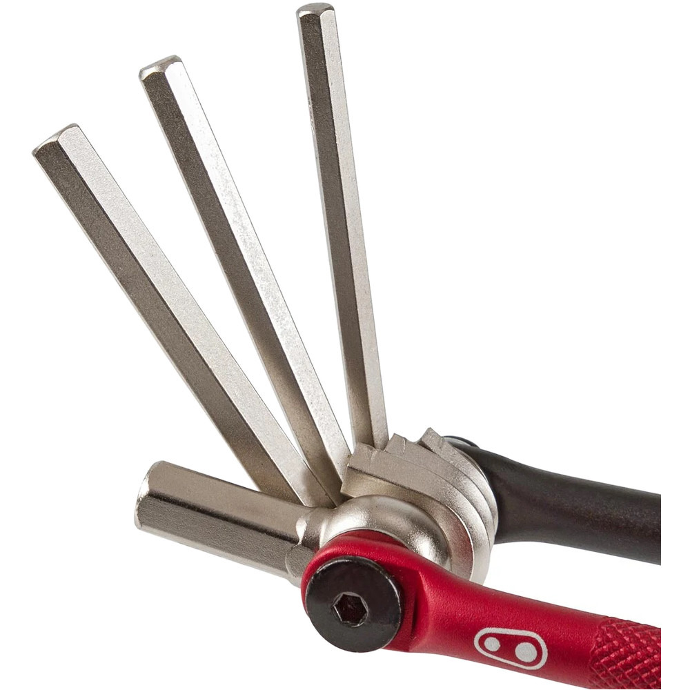 Multitool Crank Brothers M10 posiada 10 najbardziej przydatnych kluczy w tym siedem rozmiarów imbusów, śrubokręt krzyżowy, śrubokręt płaski i klucz Torx.