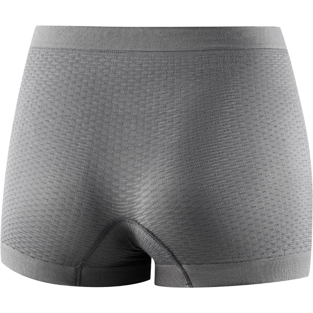Bokserki damskie Base Layer to uniwersalna i funkcjonalna bielizna, idealnie sprawdzająca się jako podstawowa warstwa ubioru. Produkt został wykonany w technologii bezszwowej z ultralekkiej i cienkiej dzianiny. Gwarantuje doskonałe dopasowanie do kształtu sylwetki, a dwuwarstwowa budowa dzianiny zapewnia szybszy odbiór nadmiaru wilgoci i wspomaga naturalną termoregulację organizmu. Bokserki skutecznie utrzymują właściwą temperaturę oraz chronią przed przegrzaniem jak i wychłodzeniem organizmu. Perfekcyjne dopasowanie i przyleganie do kształtu ciała wraz z trójwymiarową konstrukcją dzianiny sprawia, że między ciałem a dzianiną tworzą się dodatkowe kanały cyrkulacji powietrza.
