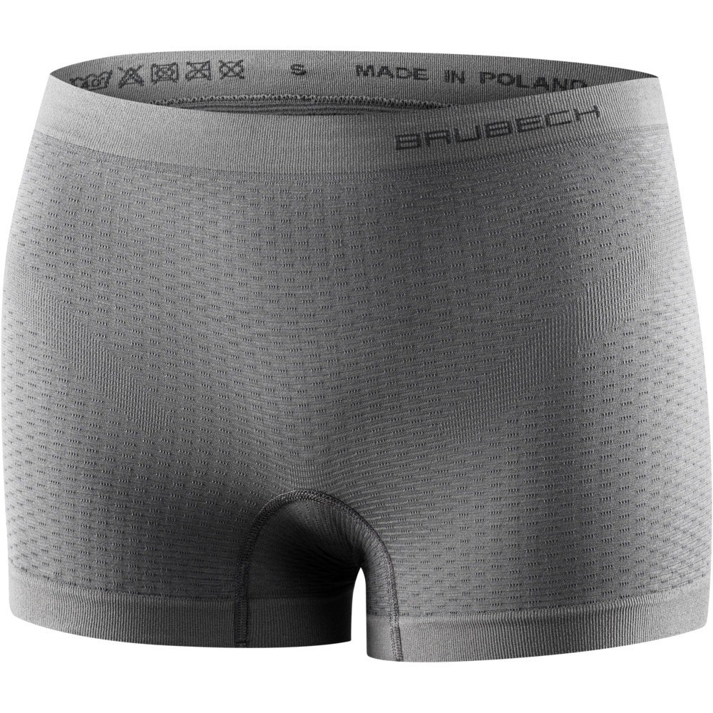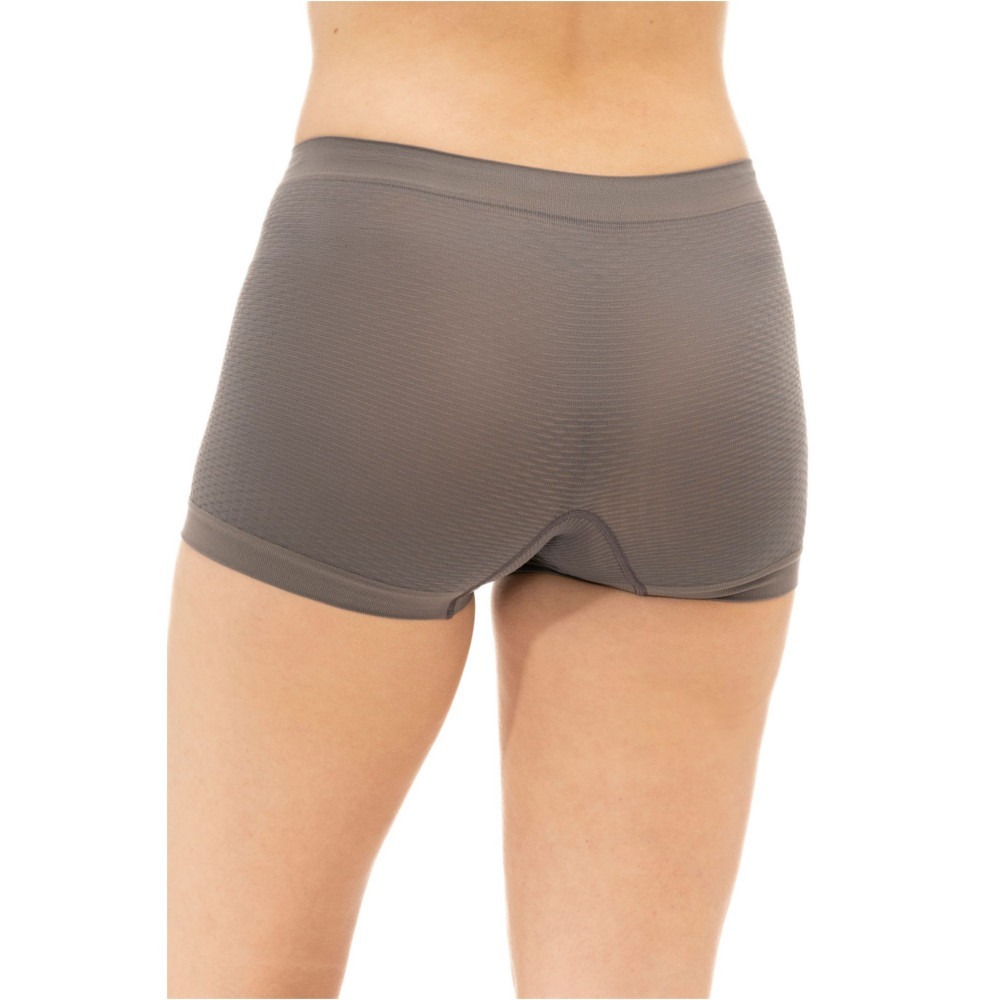 Bokserki damskie Base Layer to uniwersalna i funkcjonalna bielizna, idealnie sprawdzająca się jako podstawowa warstwa ubioru. Produkt został wykonany w technologii bezszwowej z ultralekkiej i cienkiej dzianiny. Gwarantuje doskonałe dopasowanie do kształtu sylwetki, a dwuwarstwowa budowa dzianiny zapewnia szybszy odbiór nadmiaru wilgoci i wspomaga naturalną termoregulację organizmu. Bokserki skutecznie utrzymują właściwą temperaturę oraz chronią przed przegrzaniem jak i wychłodzeniem organizmu. Perfekcyjne dopasowanie i przyleganie do kształtu ciała wraz z trójwymiarową konstrukcją dzianiny sprawia, że między ciałem a dzianiną tworzą się dodatkowe kanały cyrkulacji powietrza.