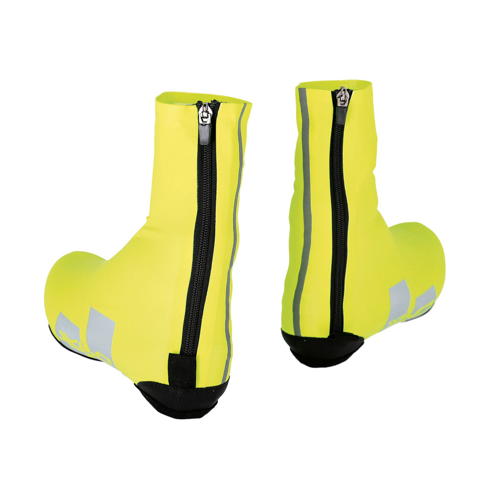 Ochraniacze wodoodporne na buty XLC BO-A08 to doskonali towarzysze na chłodne, deszczowe dni. Wyprodukowano je z odpornego na wodę poliestru PU, co sprawia, że dobrze zabezpieczają twoje obuwie i stopy przed przemoknięciem. Pokrowce na buty XLC BO-A08 zapinane są na wygodny zamek błyskawiczny usytuowany w tylnej części, co znacznie zwiększa wygodę użytkowania. Części przy palcach i piętach zostały wzmocnione, a dodatkowo przy palcach zastosowano polarowe ocieplenie, które ochroni Cię przed wychłodzeniem. Ochraniacze na buty XLC BO-A08 posiadają neonowy, żółty kolor oraz dodatkowe elementy odblaskowe, dzięki czemu znacznie zwiększają widoczność na drodze, poprawiając tym samym bezpieczeństwo rowerzysty.
