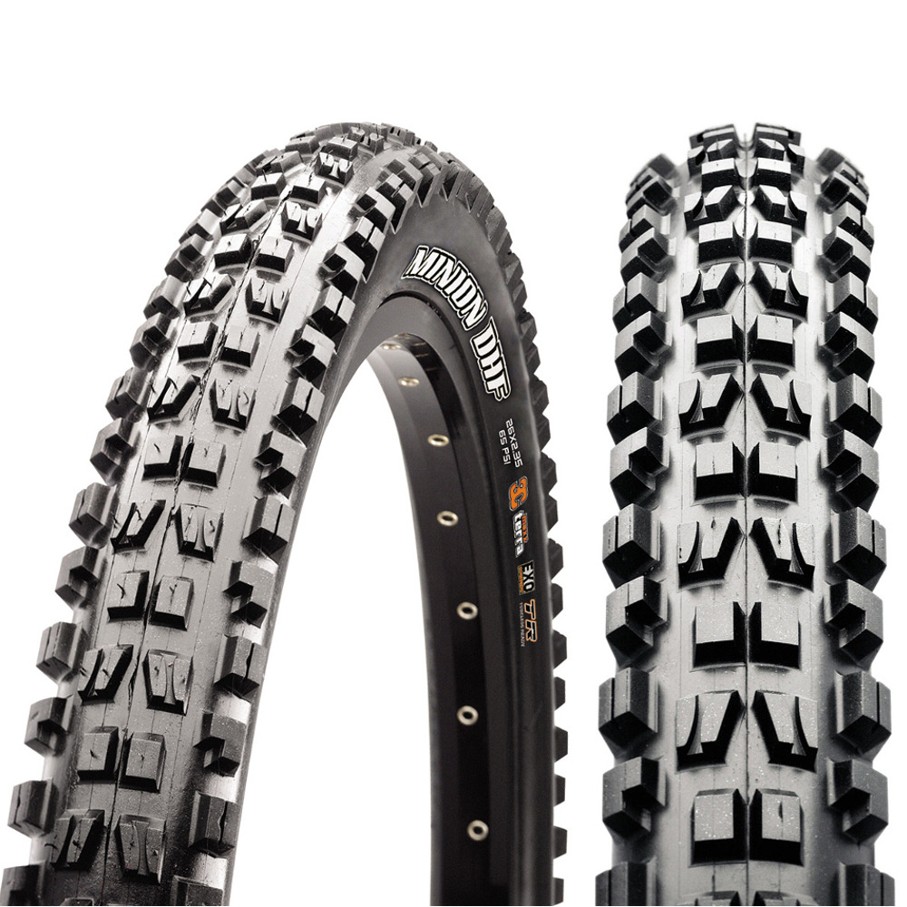 Opona rowerowa Maxxis Minion DHF to doskonały wybór dla osób uwielbiających jazdę w terenie. Świetnie sprawdzi się nawet w trudnych warunkach. Ten wariant wyprodukowano w technologii Tubeless Ready, co oznacza, że do jej wypełnienia, zamiast dętki, użyć można mleczka uszczelniającego. Opona do roweru Maxxis Minion DHF posiada specjalnie ścięte w kierunku jazdy klocki, usytuowane w centralnej części bieżnika. Dzięki nim opory toczenia znacznie się zmniejszają, a jazda jest przyjemna i gładka. Dzięki podłużnym nacięciom klocków opona Maxxis Minion DHF pewnie trzyma się na zakrętach i nie traci przyczepności. Przy produkcji opony w tym wariancie wykorzystano także technologię EXO Protection. Jest to bardzo wytrzymały materiał, który zapobiega zniszczeniom opony na bocznych, pozbawionych bieżnika ściankach. Wykorzystano również technologię 3C MaxxTerra, dzięki której udało się uzyskać jeszcze lepszą trakcję.