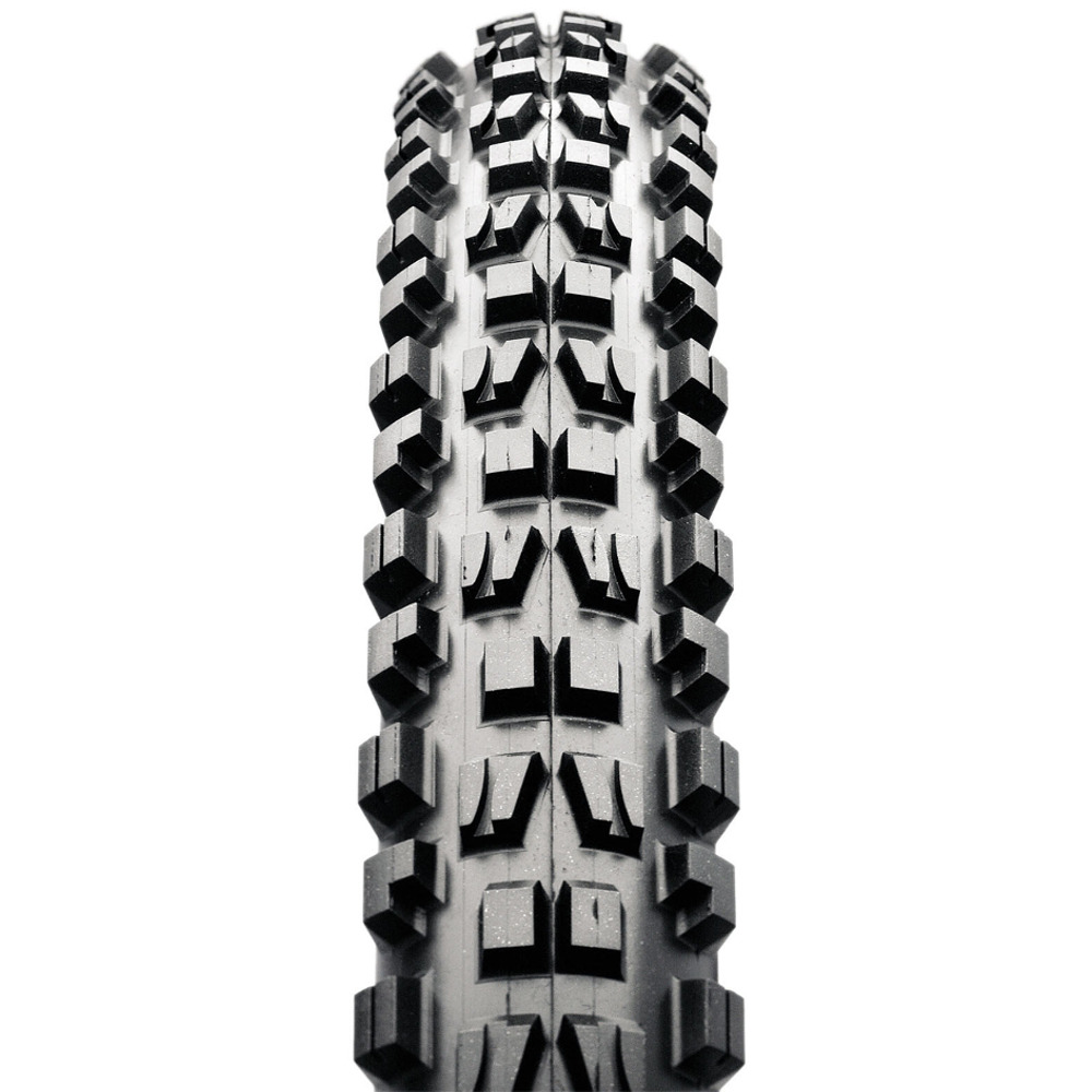Opona rowerowa Maxxis Minion DHF to doskonały wybór dla osób uwielbiających jazdę w terenie. Świetnie sprawdzi się nawet w trudnych warunkach. Ten wariant wyprodukowano w technologii Tubeless Ready, co oznacza, że do jej wypełnienia, zamiast dętki, użyć można mleczka uszczelniającego. Opona do roweru Maxxis Minion DHF posiada specjalnie ścięte w kierunku jazdy klocki, usytuowane w centralnej części bieżnika. Dzięki nim opory toczenia znacznie się zmniejszają, a jazda jest przyjemna i gładka. Dzięki podłużnym nacięciom klocków opona Maxxis Minion DHF pewnie trzyma się na zakrętach i nie traci przyczepności. Przy produkcji opony w tym wariancie wykorzystano także technologię EXO Protection. Jest to bardzo wytrzymały materiał, który zapobiega zniszczeniom opony na bocznych, pozbawionych bieżnika ściankach.