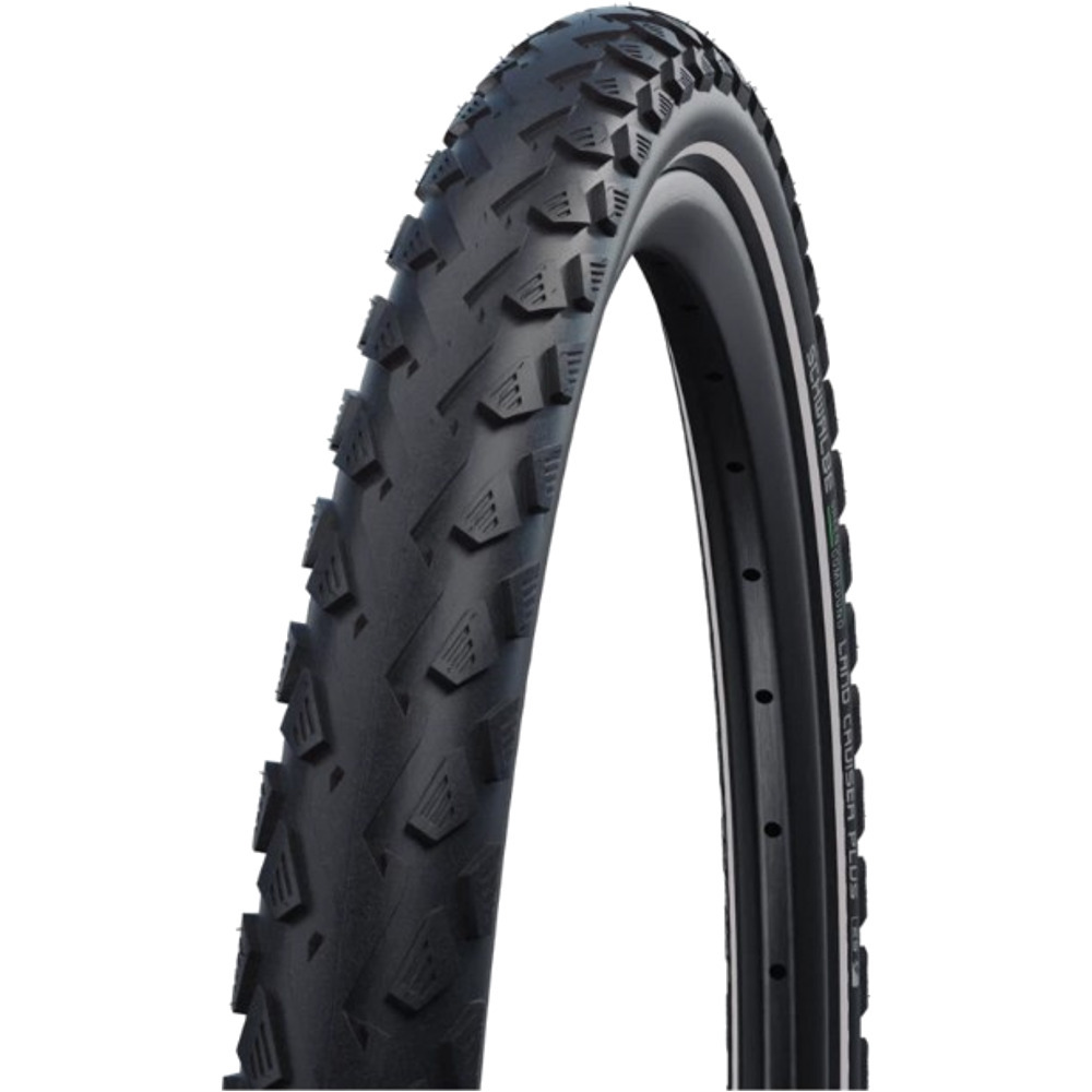 Model „Plus” rekomendowany jest do rowerów elektrycznych o prędkości do 25 km/h, spełniając normę ECE-R25. Dla zwiększenia bezpieczeństwa rowerzysty opona posiada pasek odblaskowy na bokach, który podnosi widoczność po zmroku oraz w trudnych warunkach atmosferycznych. Opona Schwalbe Land Cruiser Plus łączy w sobie funkcjonalność, wytrzymałość i bezpieczeństwo, stanowiąc idealny wybór dla osób poszukujących trwałego i niezawodnego ogumienia miejskiego oraz trekkingowego.