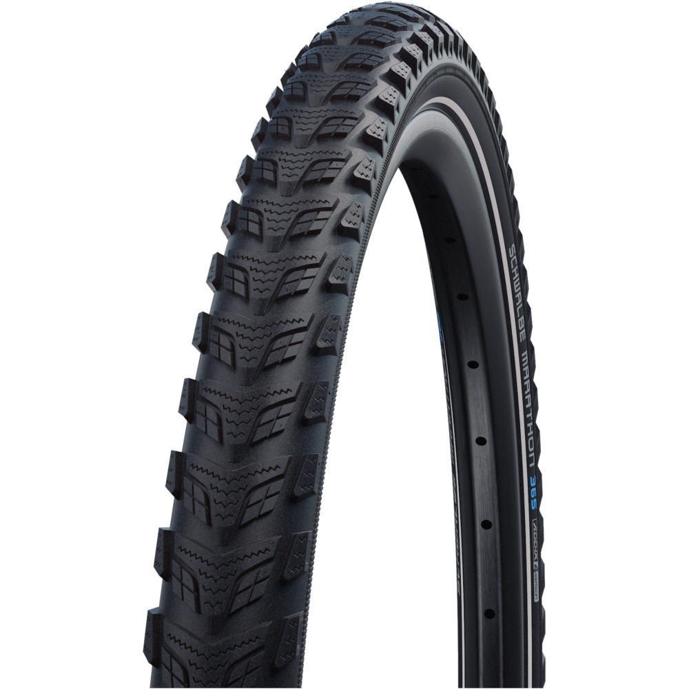 Schwalbe Marathon 365 to opona całoroczna, która sprawdzi się doskonale zarówno latem, jak i zimą w trudnych warunkach pogodowych. Wykonana z wysokiej jakości mieszanki Addix 4-Season, zapewnia wyjątkową przyczepność nawet w niskich temperaturach, a także niskie opory toczenia niezależnie od pory roku. Dzięki solidnej wkładce antyprzebiciowej GreenGuard opona gwarantuje skuteczną ochronę przed przebiciem, co czyni ją niezawodną w zróżnicowanym terenie miejskim i poza nim.