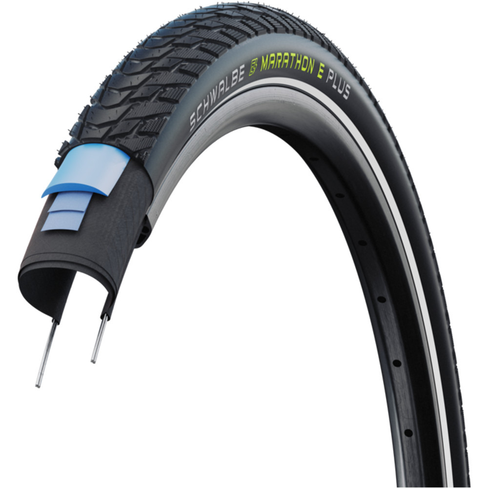 Specjalna konstrukcja ściany bocznej z technologią „anti-aging” skutecznie zapobiega powstawaniu nieestetycznych pęknięć, które zwykle powstają na skutek niskiego ciśnienia powietrza i intensywnej eksploatacji. Dodatkową zaletą terenowej opony Schwalbe Marathon E-Plus Smart DualGuard jest umieszczenie na jej bokach paska odblaskowego – z nim będziesz znacznie lepiej widoczny w ciemnościach lub w niesprzyjającą pogodę.