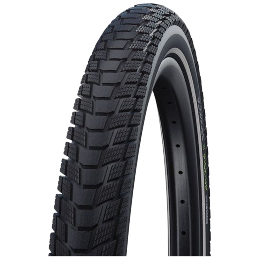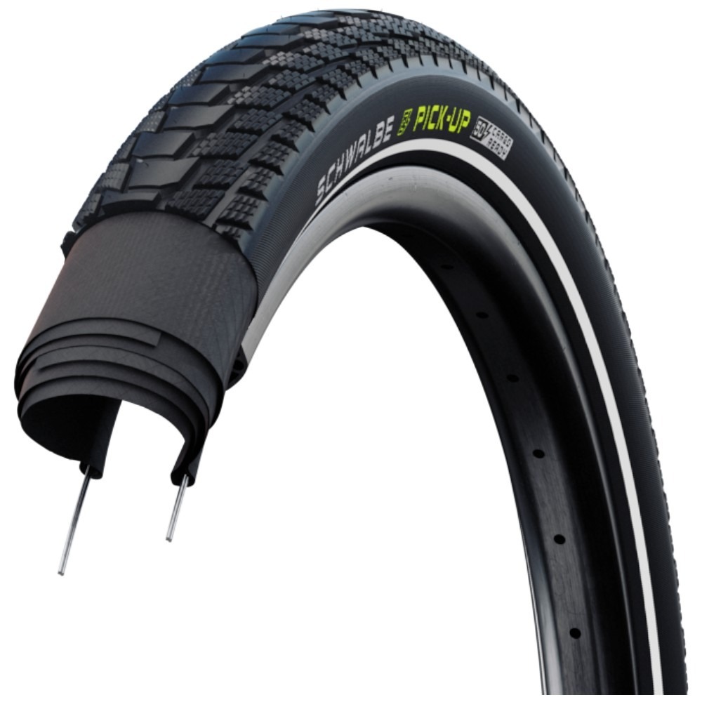 Opona Schwalbe Pick-Up jest drutowa i opiera swoją konstrukcję na unikatowej mieszance Addix E – guma zapewnia wyjątkową przyczepność w połączeniu z dobrymi osiągami, a co bardzo istotne podczas użytkowania e-bike’ów cargo – świetnie radzi sobie z większymi prędkościami. Ponadto marka zastosowała podwójną osnowę (EPI 2x73) – bezpieczną przy dużych obciążeniach jednośladu i znacznie utrudniającą przebicie opony.