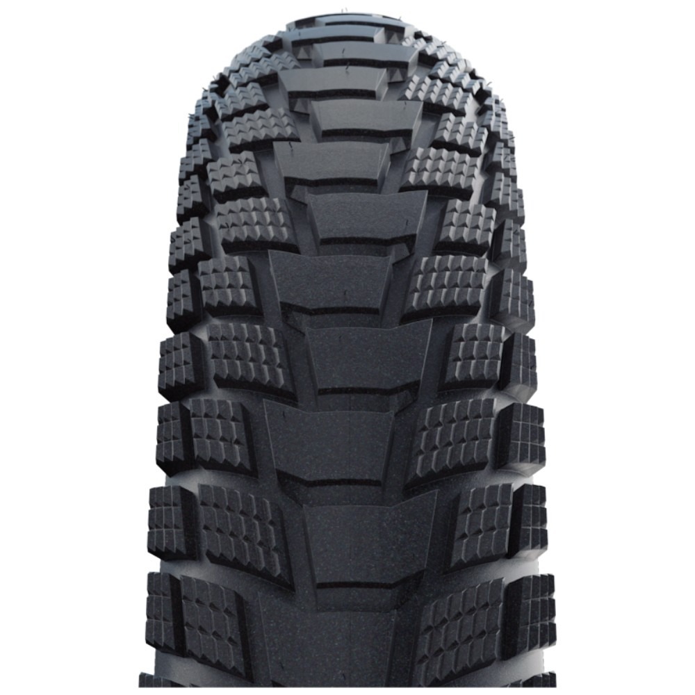 Zwieńczeniem opony cargo Schwalbe Pick-Up jest odblaskowy pasek dodany po jej bokach. Ten bardzo użyteczny dodatek w warunkach miejskich spowoduje, że w mroku lub złych warunkach atmosferycznych kierownicy łatwiej Cię zauważą na drodze.