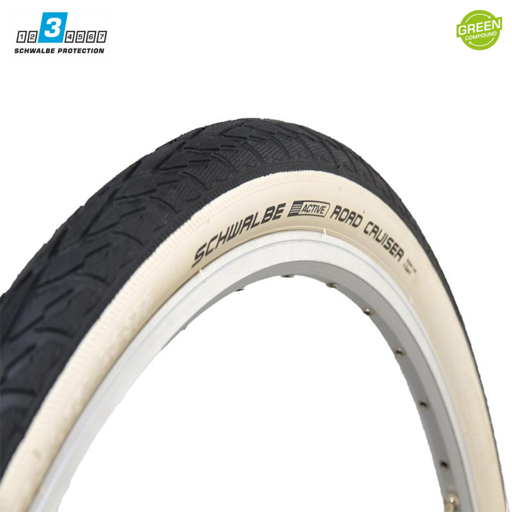 Schwalbe Road Cruiser to dynamiczna opona miejska, która łączy komfort jazdy z uniwersalnością zastosowania. Jej bieżnik został zaprojektowany tak, aby minimalizować opory toczenia, co gwarantuje płynną i ekonomiczną jazdę, a jednocześnie pozwala na pewne poruszanie się na nawierzchniach szutrowych. Opona wykorzystuje mieszankę gumy Green Compound, która zapewnia idealną równowagę między trwałością a komfortem jazdy, utrzymując niskie opory toczenia oraz doskonałą przyczepność nawet w trudnych warunkach.
