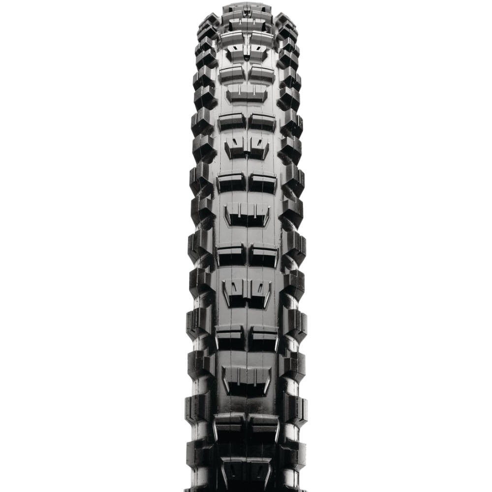 Bieżnik opony częściowo przeniesiony został z modelu Maxxis Minion DHF, co widać po bocznych klockach – kluczowych w czasie skrętów. Jednakże środkowe klocki są w porównaniu do tamtej opony szersze, umożliwiają pewniejsze hamowanie, a kiedy przyjdzie Ci się mierzyć z wymagającymi zjazdami i podjazdami – docenisz sposób, w jaki wgryzają się w ziemie!