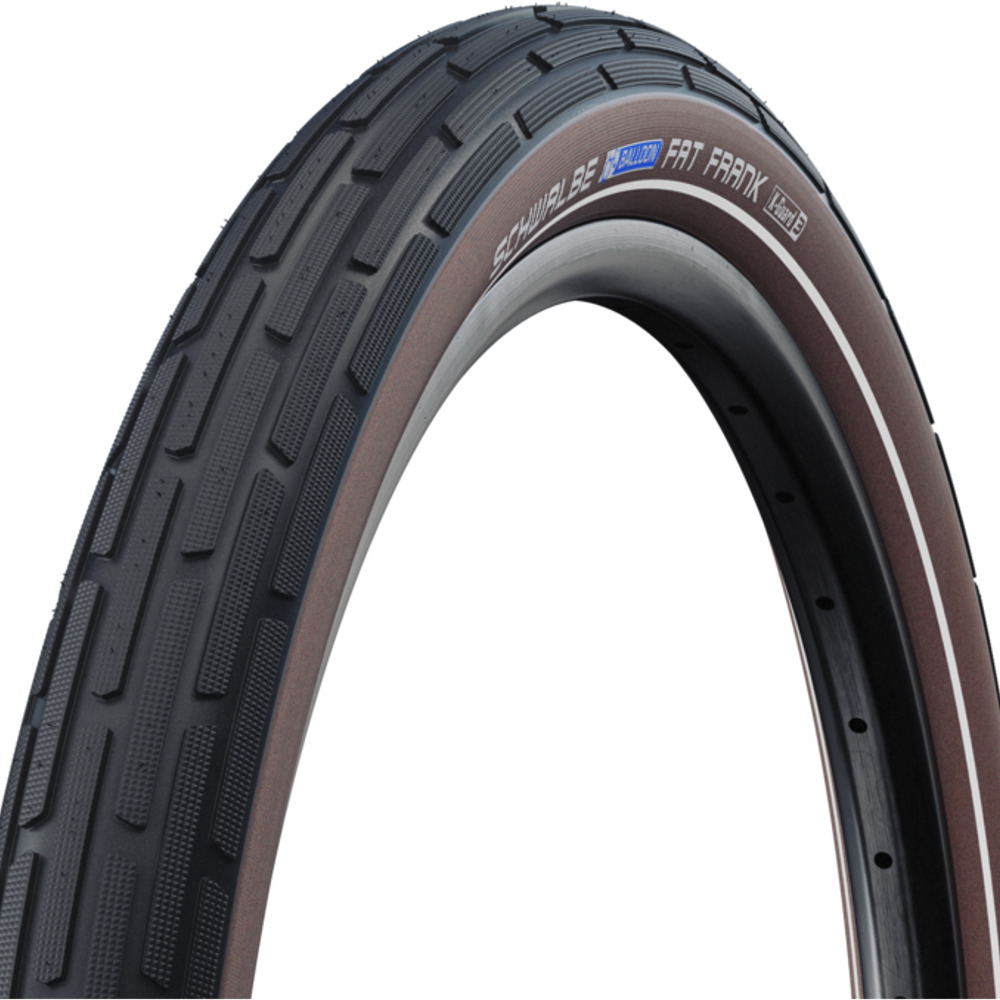 Opona Schwalbe Fat Frank to ogumienie przygotowywane przede wszystkim z myślą o miłośnikach jazdy w terenie zabudowanym oraz trekkingowej – a w szczególności dla sympatyków rowerów typu Cruiser. Opona Schwalbe Fat Frank wykorzystuje technologie znane z serii Schwalbe Big Apple – mieszanka jest trwała – perfekcyjna na warunki miejskie. Co więcej, ogumienie udoskonalono za sprawą wkładki antyprzebiciowej K-Guard – wykonanej z naturalnej gumy i wzmocnionej kevlarem.