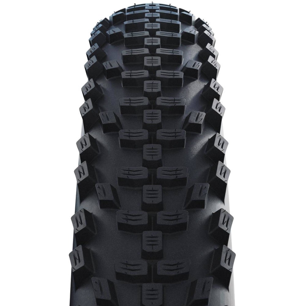 Wyraźny bieżnik o dużych klockach bocznych pozwala zachować przyczepność nawet na śliskiej nawierzchni, a jednocześnie nie generuje dużych oporów toczenia.