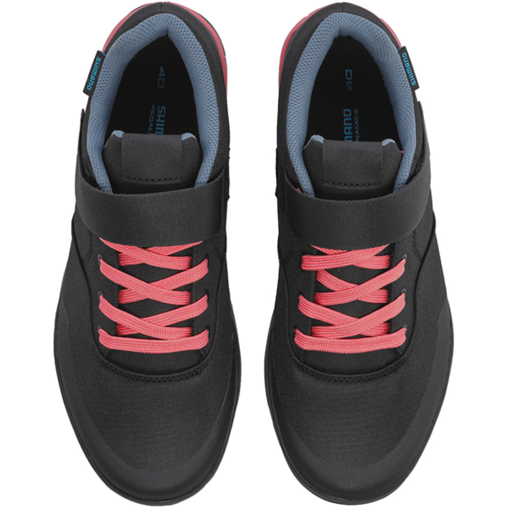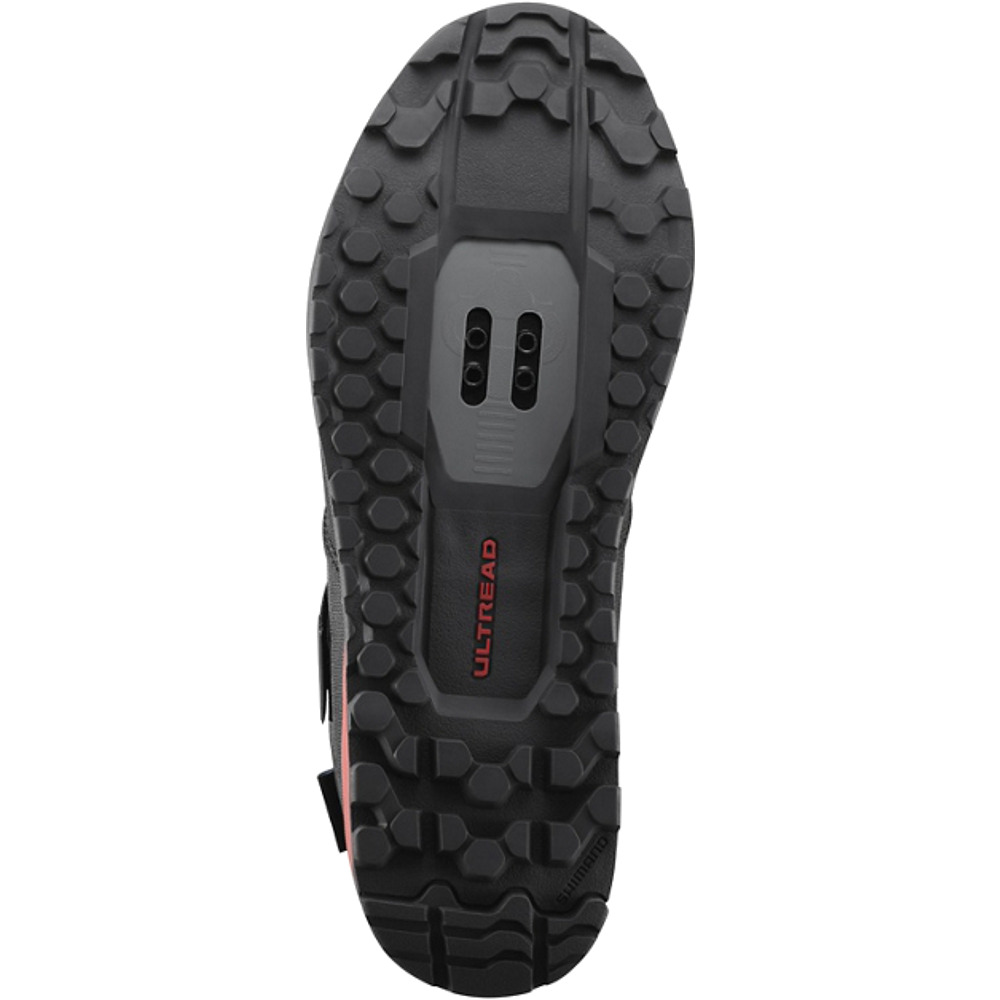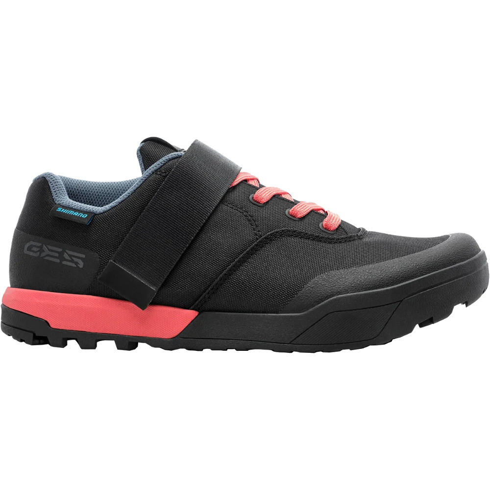 Buty damskie Shimano GE-500W to uniwersalny model butów SPD do jazdy enduro. Łączą one w sobie ciekawie wzornictwo, przyczepność podczas chodzenia oraz ochronę, dzięki zastosowaniu wyższego, asymetrycznego kołnierza kostki z dodatkową wyściółką.