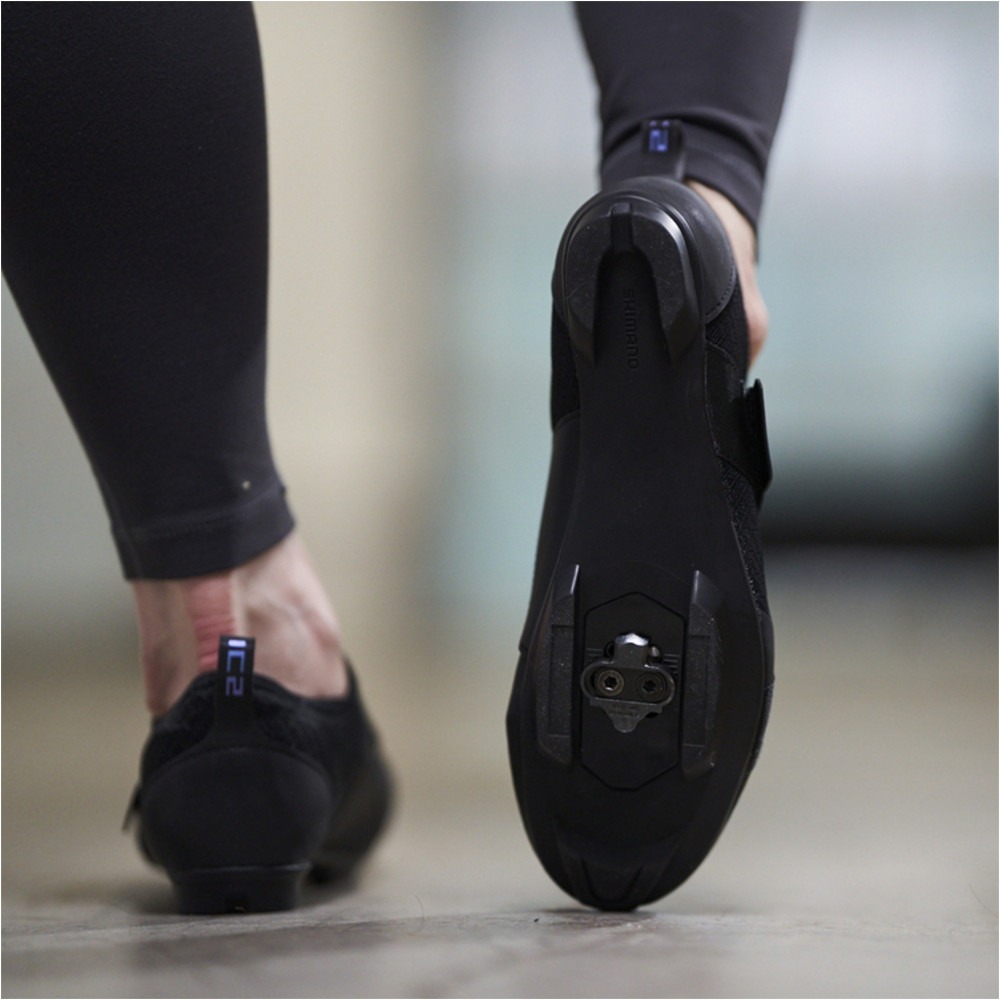 Wierzch butów Shimano SH IC200 został wykonany z wygodnej, oddychającej siateczki. To zapewni użytkowniczce pełną swobodę podczas intensywnego treningu. Paski na rzepy umieszczone przeciwlegle służą zarówno do luzowania, jak i napinania, co zapewni najbardziej optymalne dopasowanie do podbicia stopy. Lekka podeszwa wykonana z nylonu została wzmocniona włóknem szklanym.